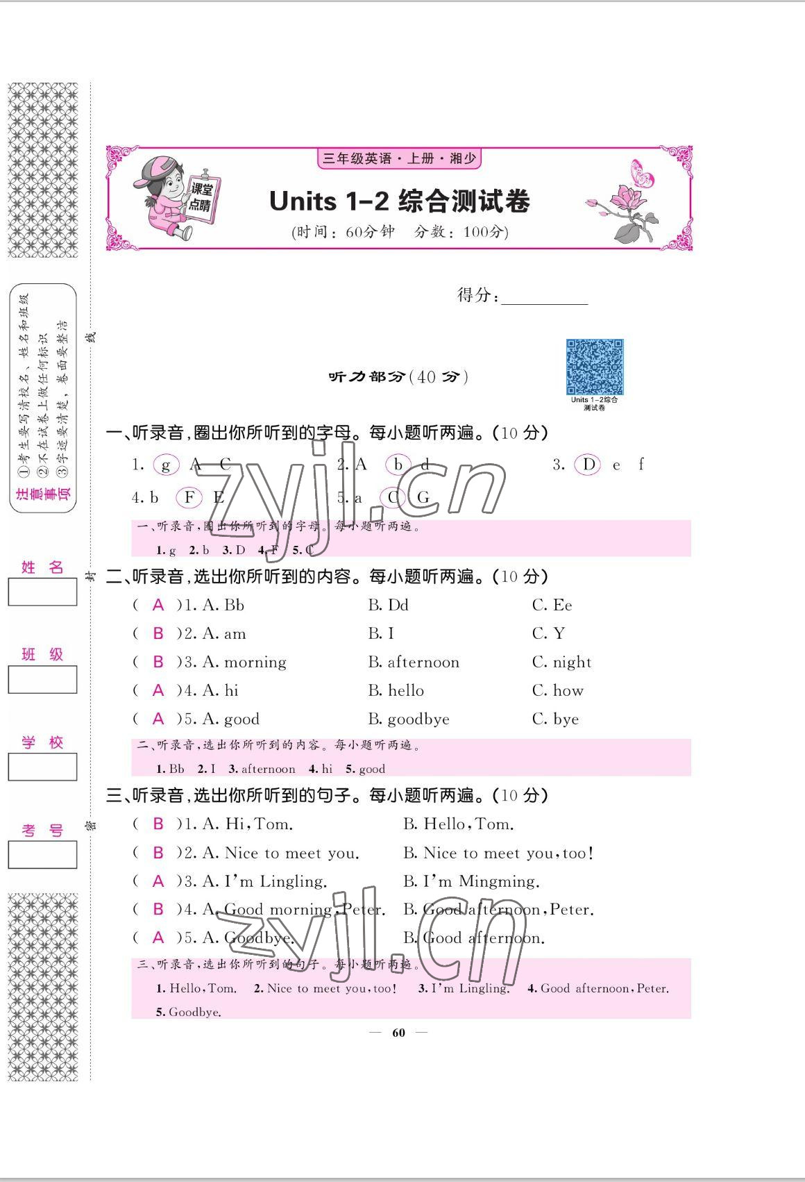 注:目前有些书本章节名称可能整理的还不是很完善,但都是按照顺序排列的,请同学们按照顺序仔细查找。练习册 2022年课堂点睛三年级英语上册湘少版 答案主要是用来给同学们做完题方便对答案用的,请勿直接抄袭。
