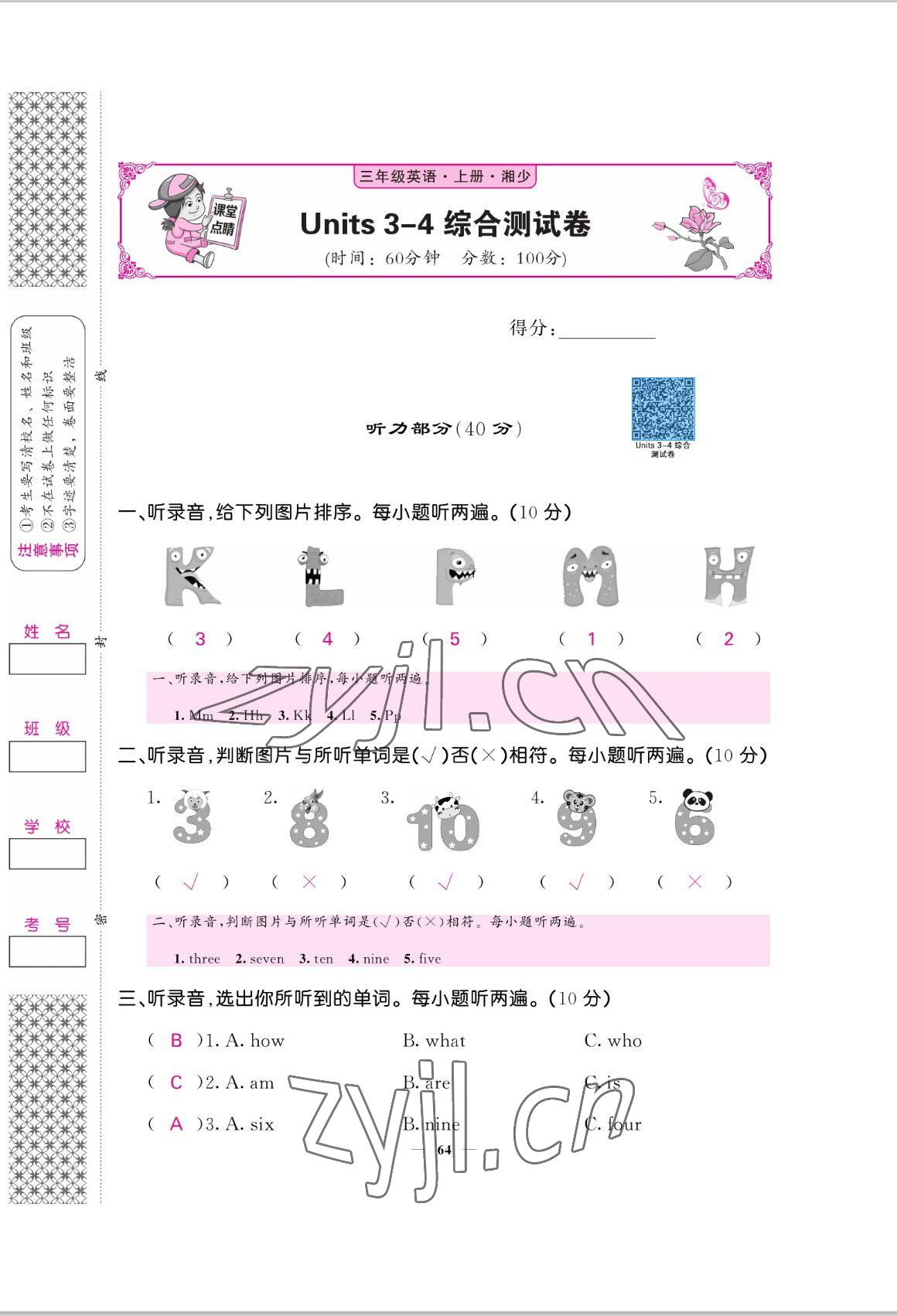 注:目前有些书本章节名称可能整理的还不是很完善,但都是按照顺序排列的,请同学们按照顺序仔细查找。练习册 2022年课堂点睛三年级英语上册湘少版 答案主要是用来给同学们做完题方便对答案用的,请勿直接抄袭。