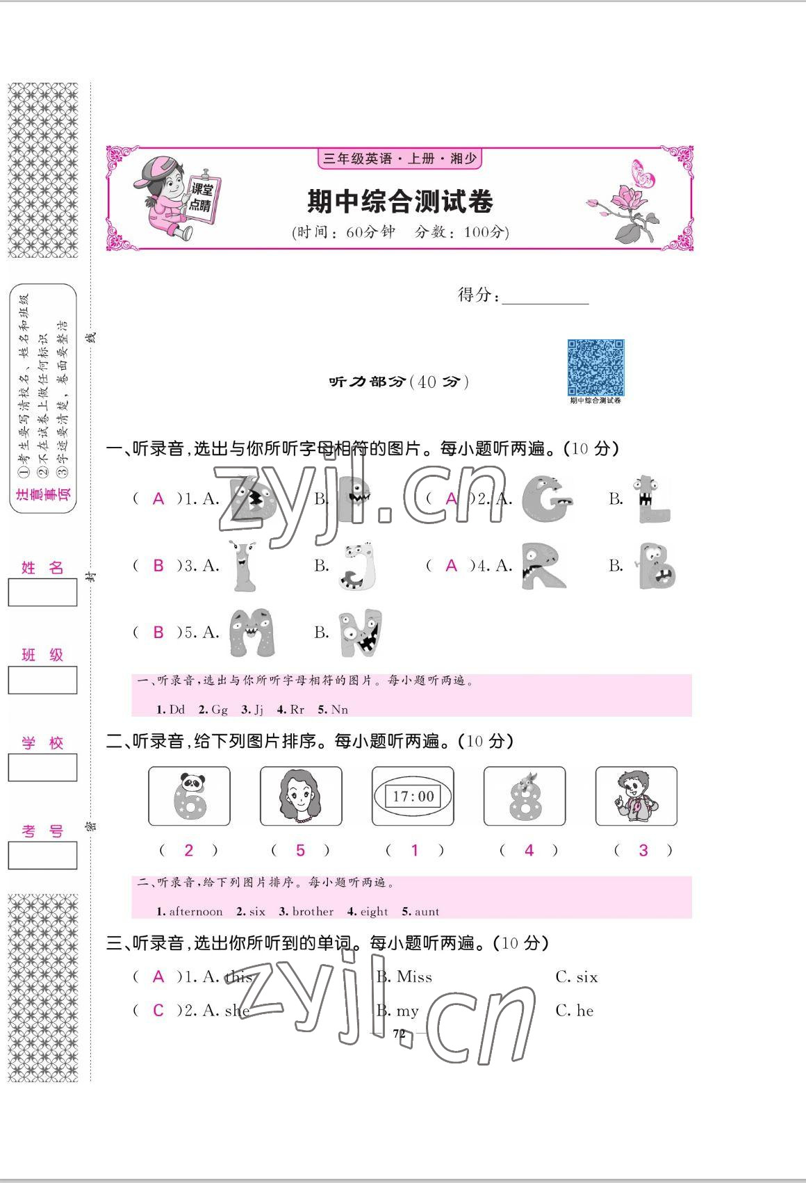 注:目前有些书本章节名称可能整理的还不是很完善,但都是按照顺序排列的,请同学们按照顺序仔细查找。练习册 2022年课堂点睛三年级英语上册湘少版 答案主要是用来给同学们做完题方便对答案用的,请勿直接抄袭。