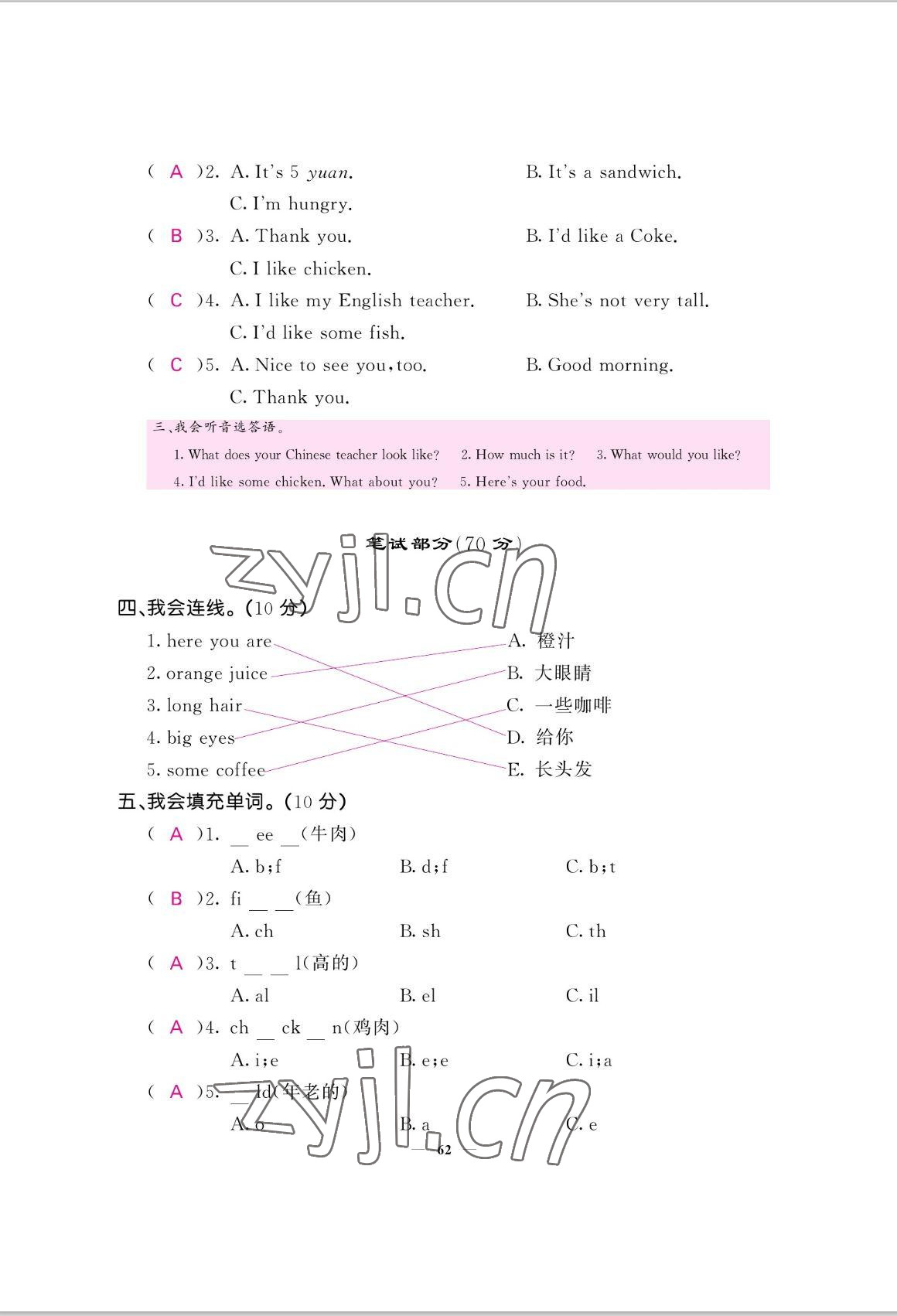 参考答案第62页
