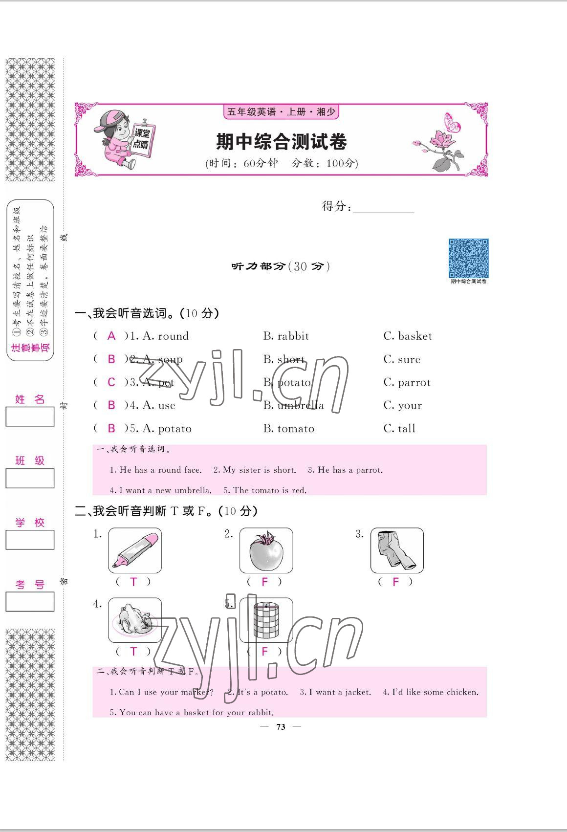 - 参考答案第73页