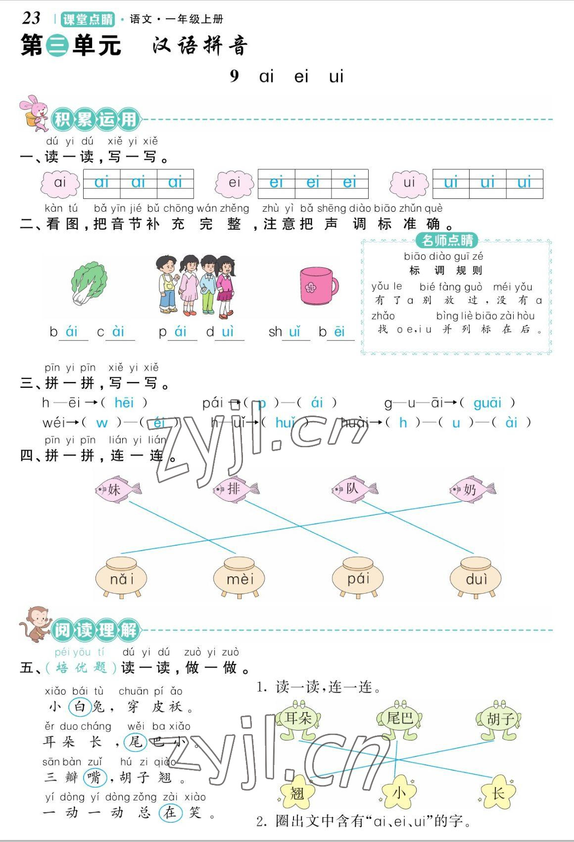 2022年课堂点睛一年级语文上册人教版湖南专版