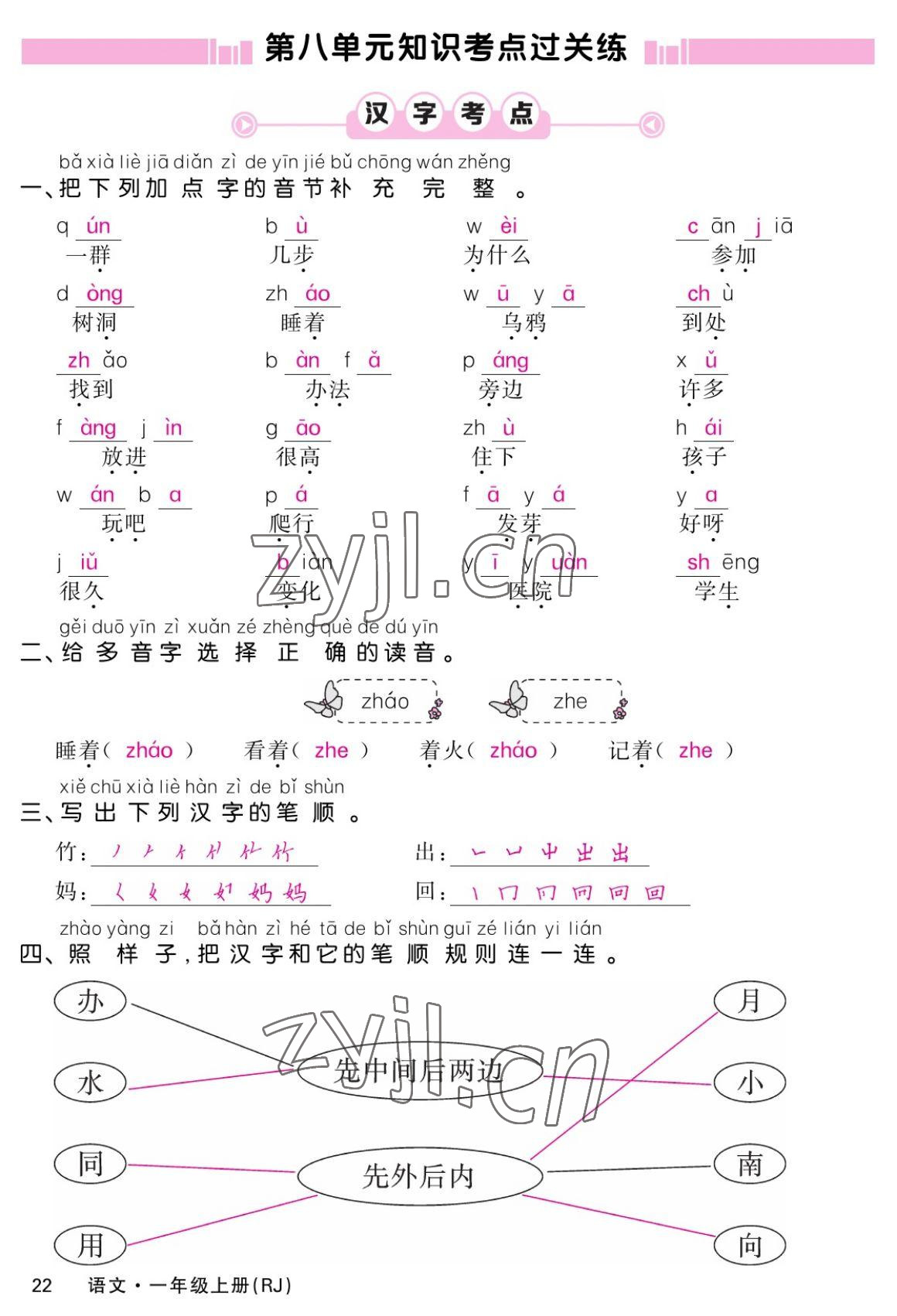 2022年课堂点睛一年级语文上册人教版湖南专版