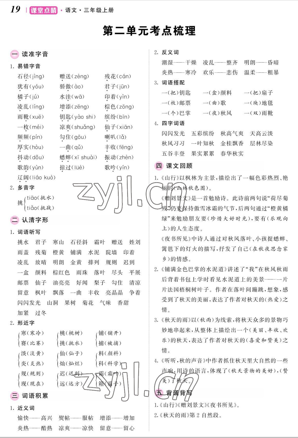 注:目前有些书本章节名称可能整理的还不是很完善,但都是按照顺序排列的,请同学们按照顺序仔细查找。练习册 2022年课堂点睛三年级语文上册人教版湖南专版 答案主要是用来给同学们做完题方便对答案用的,请勿直接抄袭。