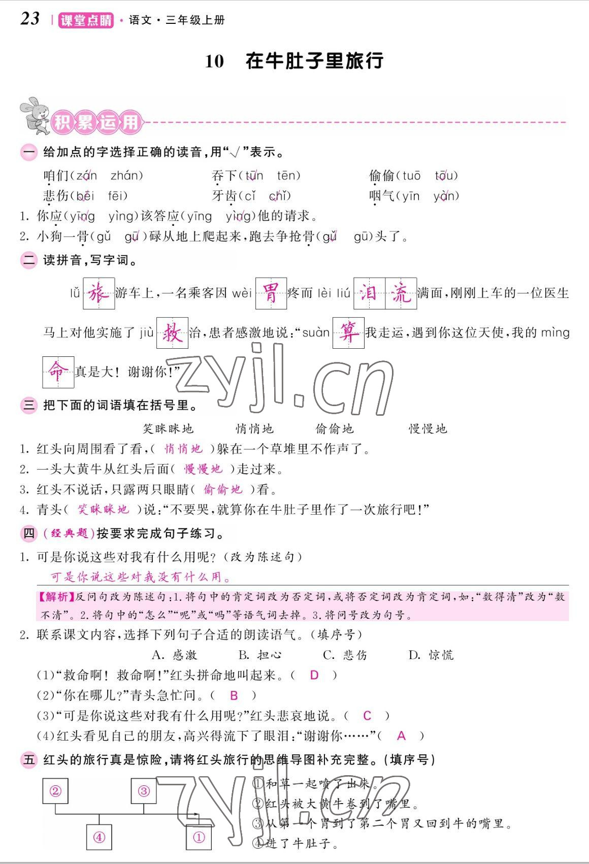 2022年课堂点睛三年级语文上册人教版湖南专版