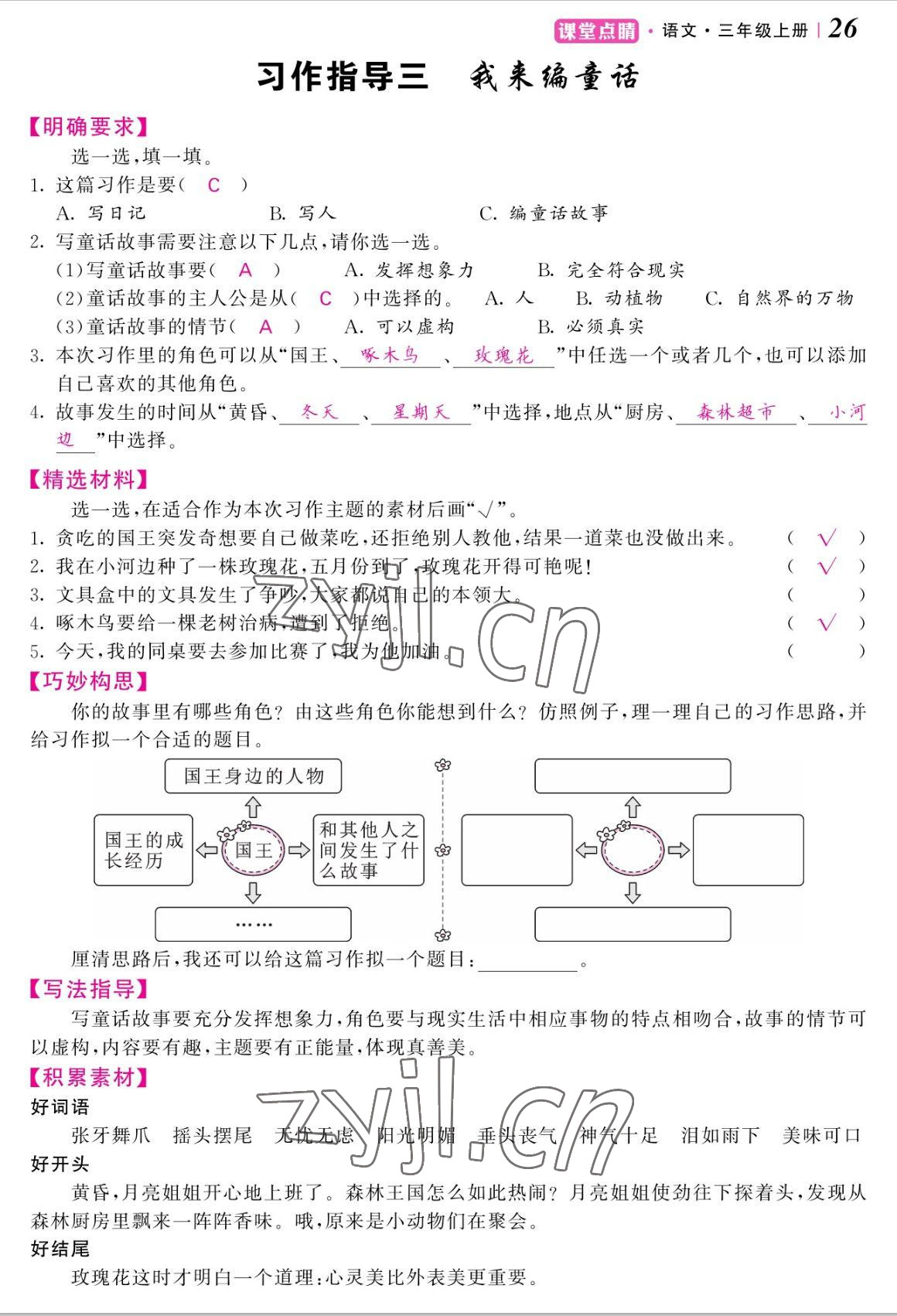注:目前有些书本章节名称可能整理的还不是很完善,但都是按照顺序排列的,请同学们按照顺序仔细查找。练习册 2022年课堂点睛三年级语文上册人教版湖南专版 答案主要是用来给同学们做完题方便对答案用的,请勿直接抄袭。