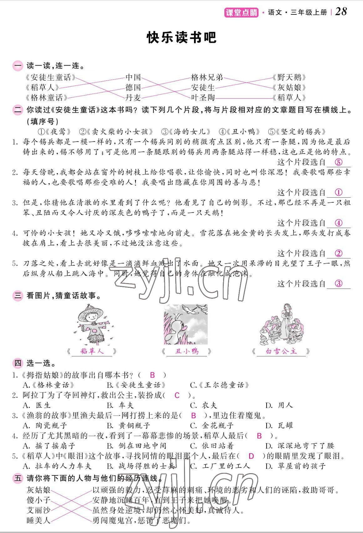 注:目前有些书本章节名称可能整理的还不是很完善,但都是按照顺序排列的,请同学们按照顺序仔细查找。练习册 2022年课堂点睛三年级语文上册人教版湖南专版 答案主要是用来给同学们做完题方便对答案用的,请勿直接抄袭。