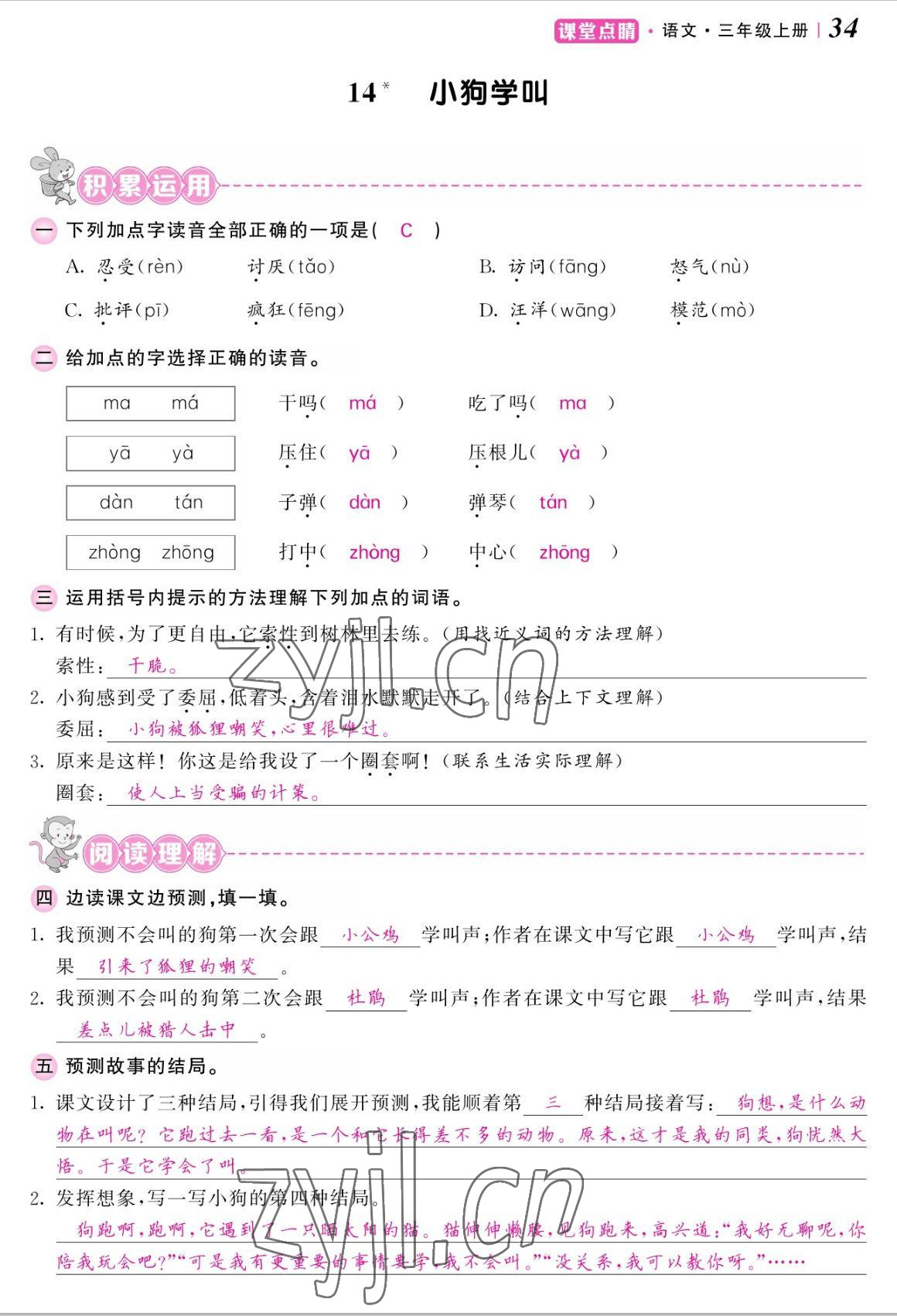 注:目前有些书本章节名称可能整理的还不是很完善,但都是按照顺序排列的,请同学们按照顺序仔细查找。练习册 2022年课堂点睛三年级语文上册人教版湖南专版 答案主要是用来给同学们做完题方便对答案用的,请勿直接抄袭。
