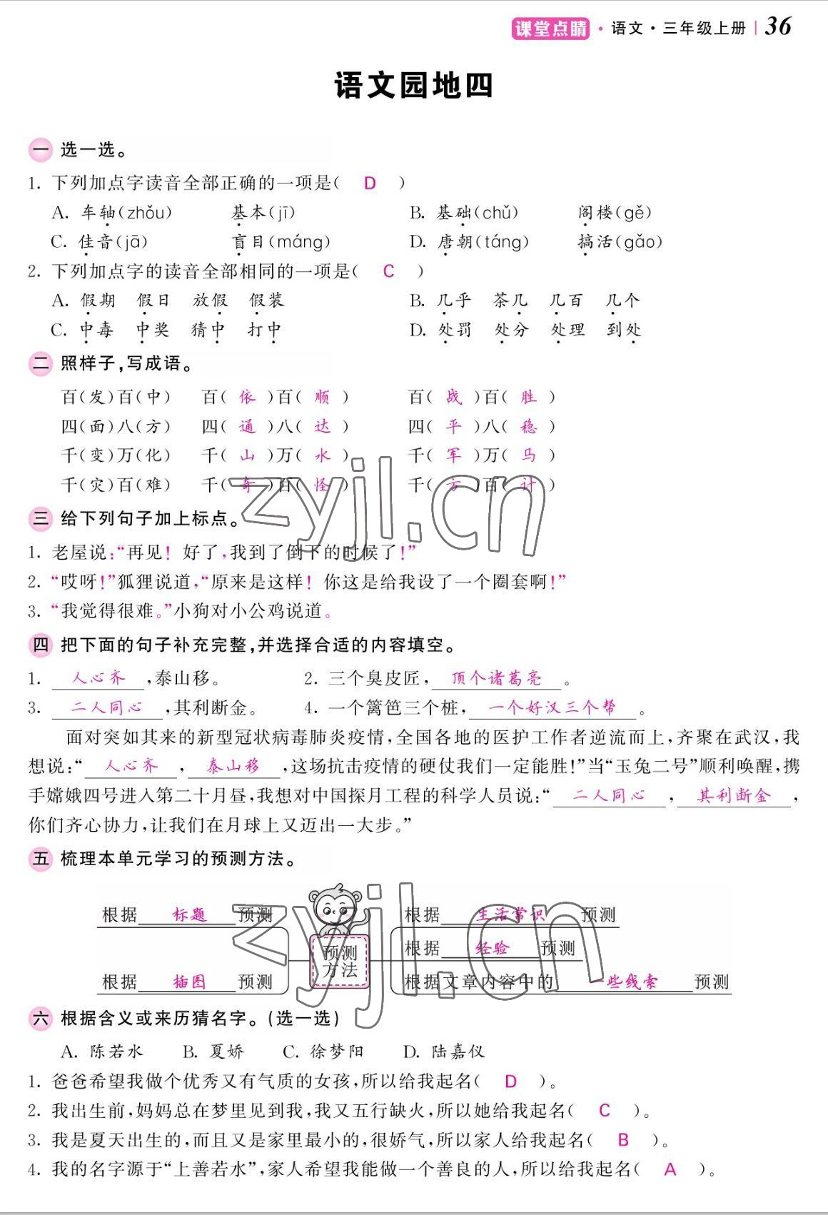 《2022年课堂点睛三年级语文上册人教版湖南专版》