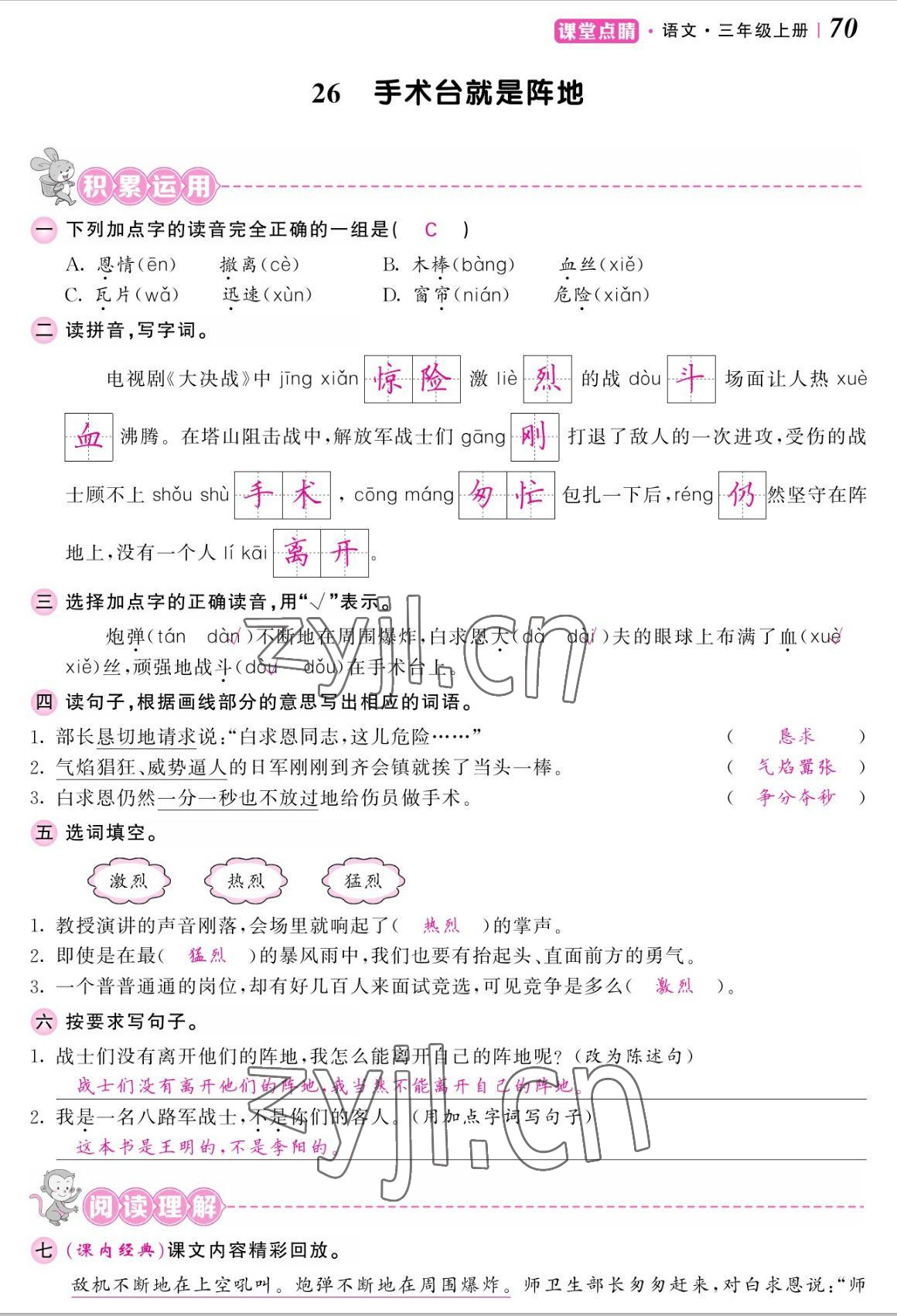2022年课堂点睛三年级语文上册人教版湖南专版