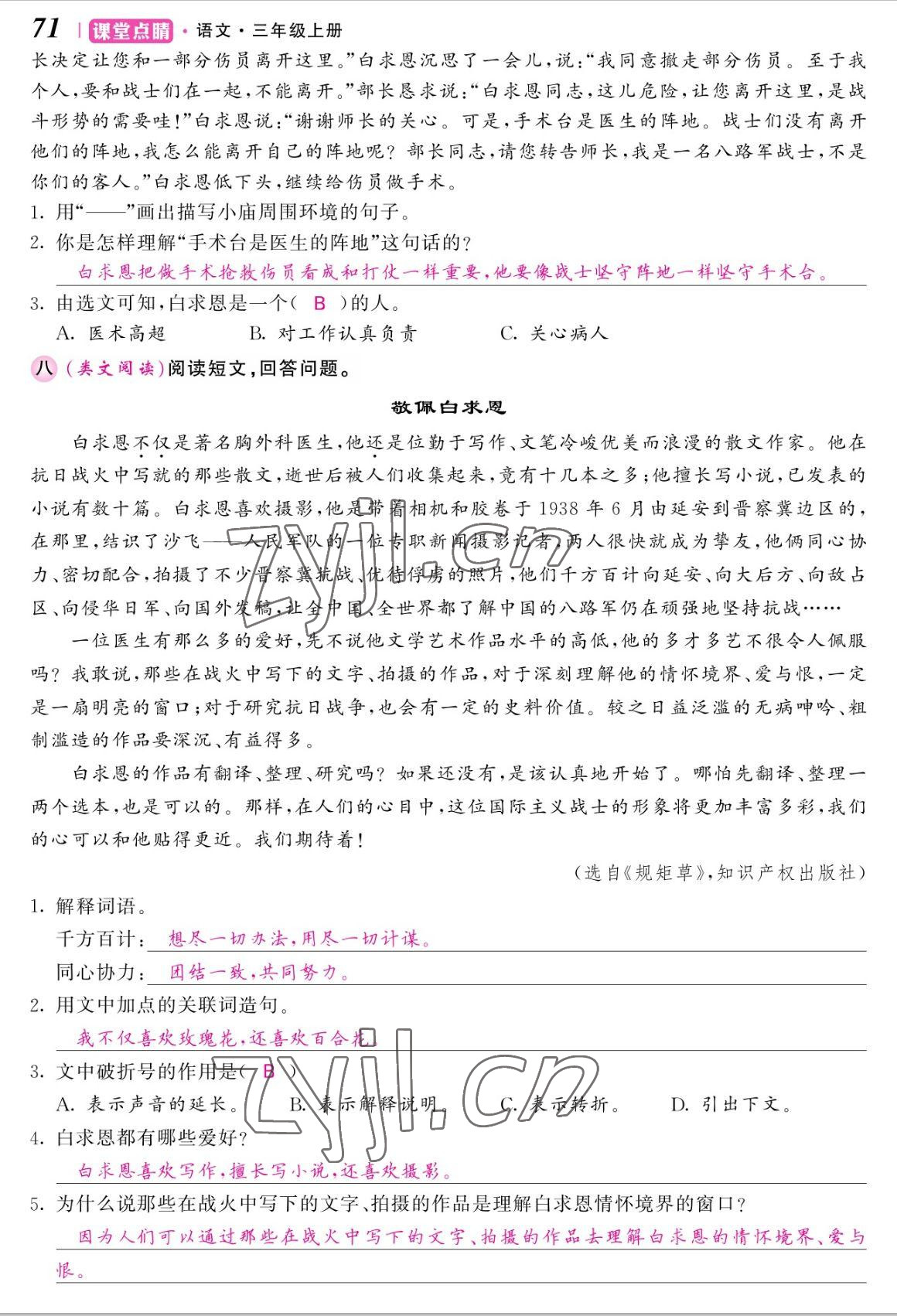 2022年课堂点睛三年级语文上册人教版湖南专版