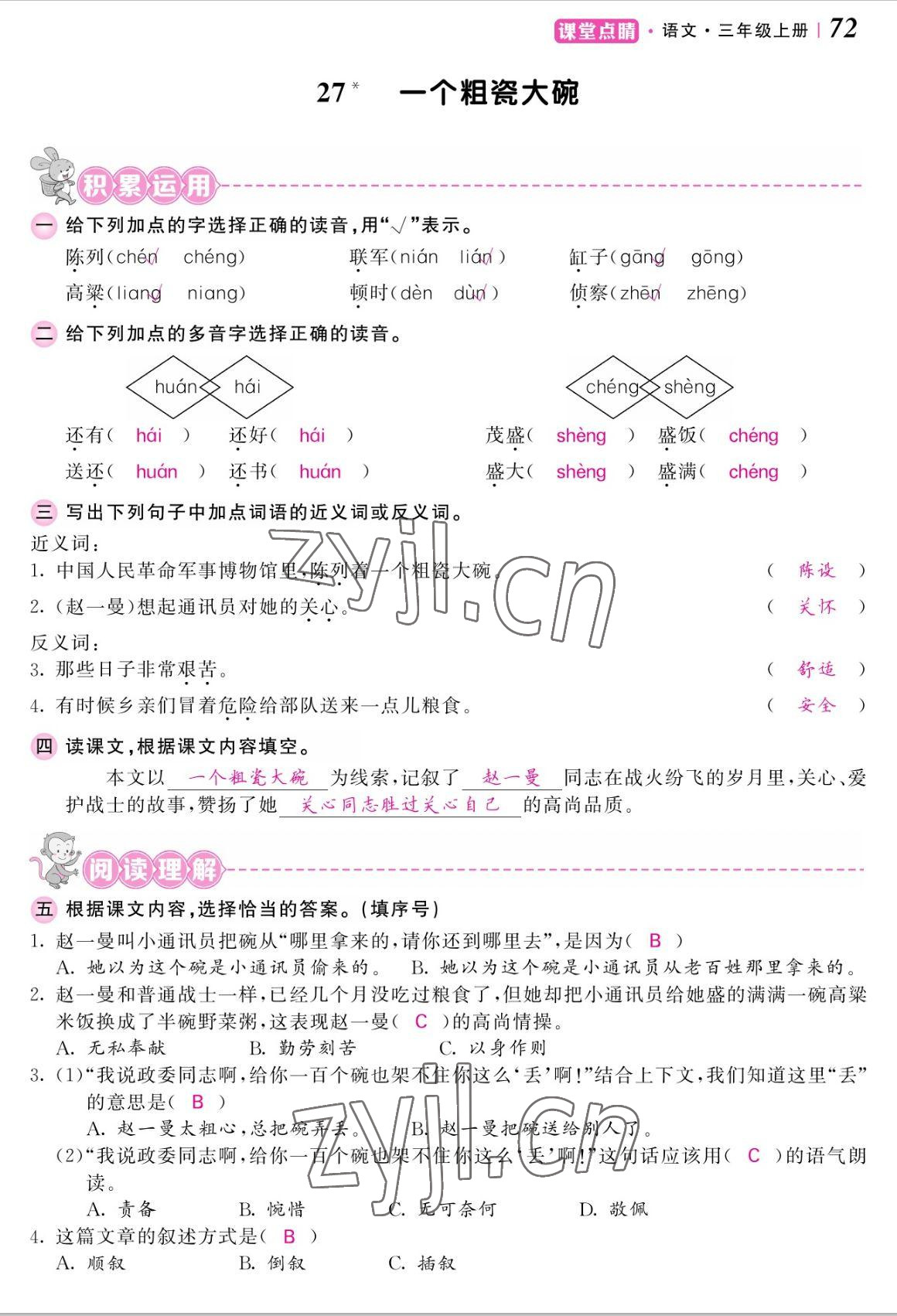 《2022年课堂点睛三年级语文上册人教版湖南专版》