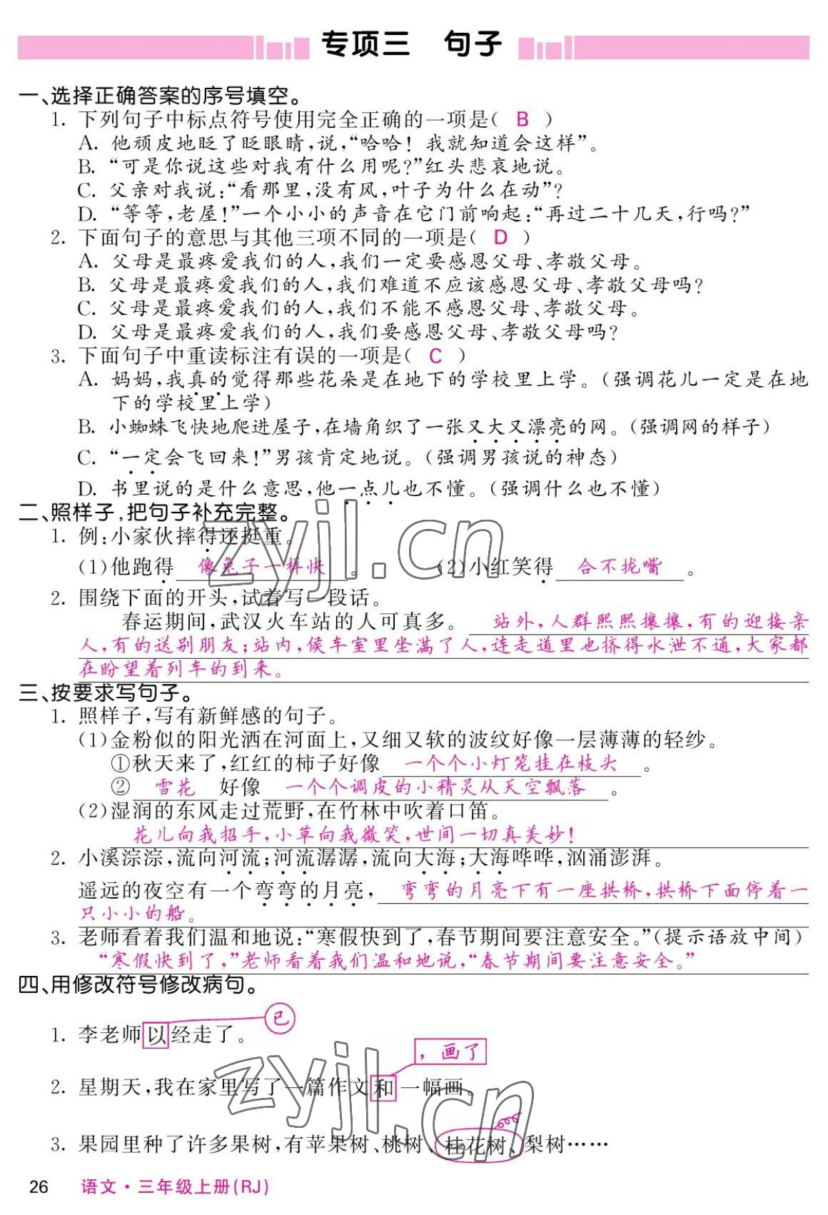 注:目前有些书本章节名称可能整理的还不是很完善,但都是按照顺序排列的,请同学们按照顺序仔细查找。练习册 2022年课堂点睛三年级语文上册人教版湖南专版 答案主要是用来给同学们做完题方便对答案用的,请勿直接抄袭。