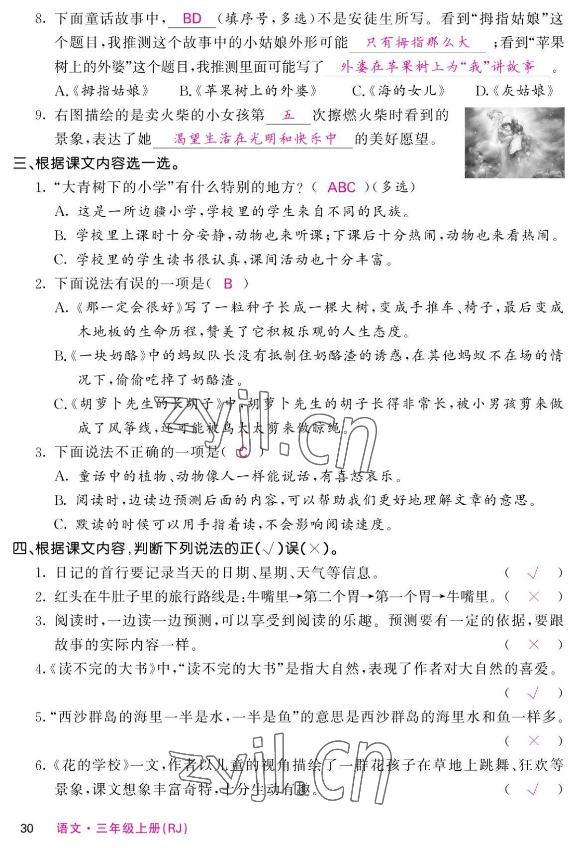 注:目前有些书本章节名称可能整理的还不是很完善,但都是按照顺序排列的,请同学们按照顺序仔细查找。练习册 2022年课堂点睛三年级语文上册人教版湖南专版 答案主要是用来给同学们做完题方便对答案用的,请勿直接抄袭。