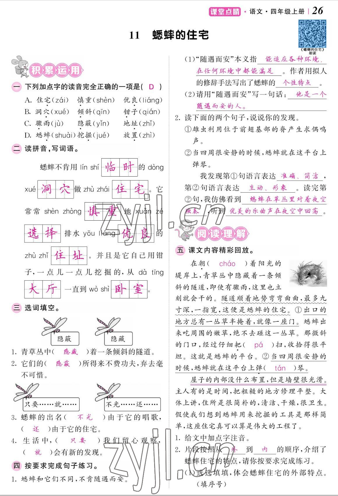 《2022年课堂点睛四年级语文上册人教版湖南专版》