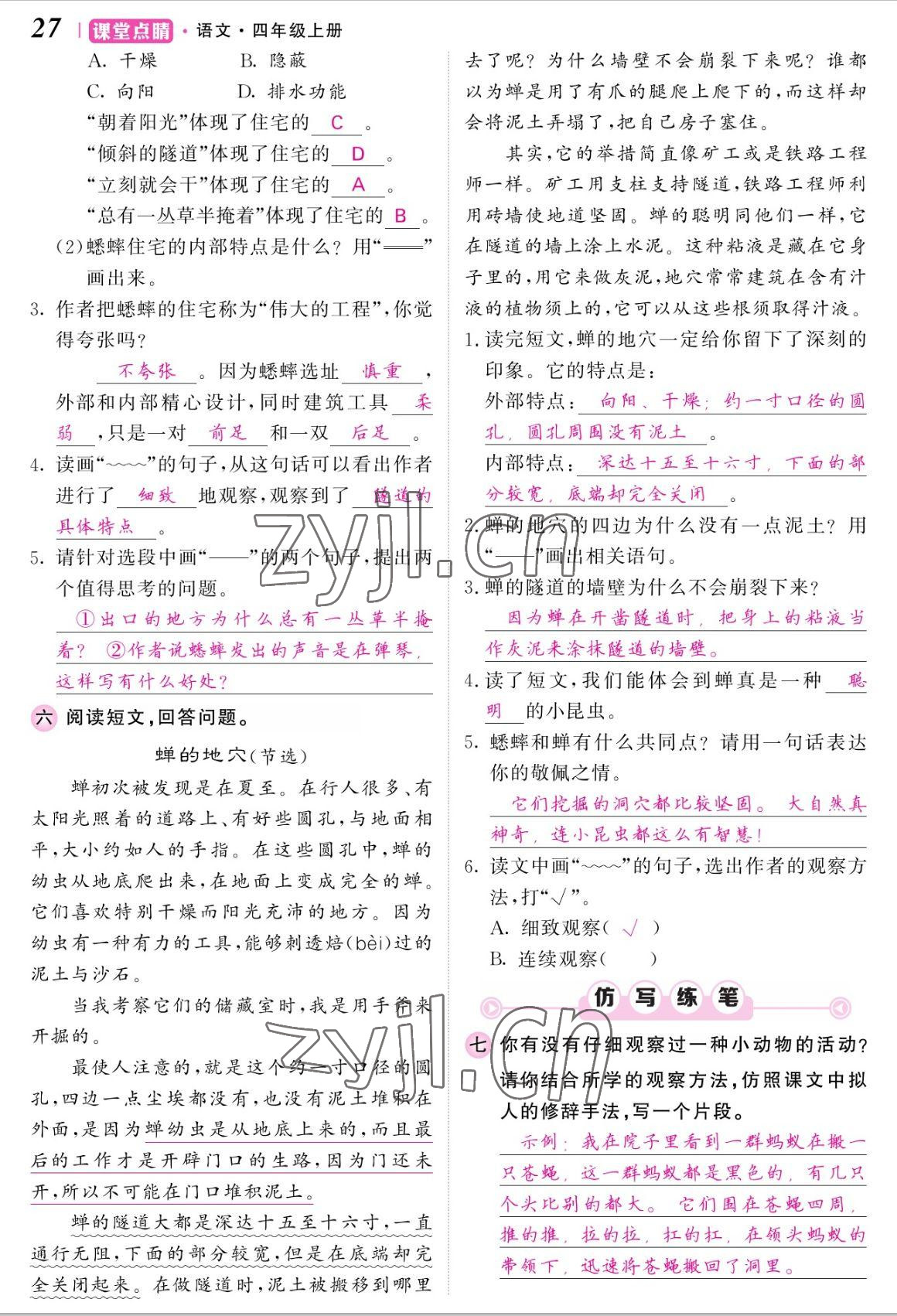 注:目前有些书本章节名称可能整理的还不是很完善,但都是按照顺序排列的,请同学们按照顺序仔细查找。练习册 2022年课堂点睛四年级语文上册人教版湖南专版 答案主要是用来给同学们做完题方便对答案用的,请勿直接抄袭。