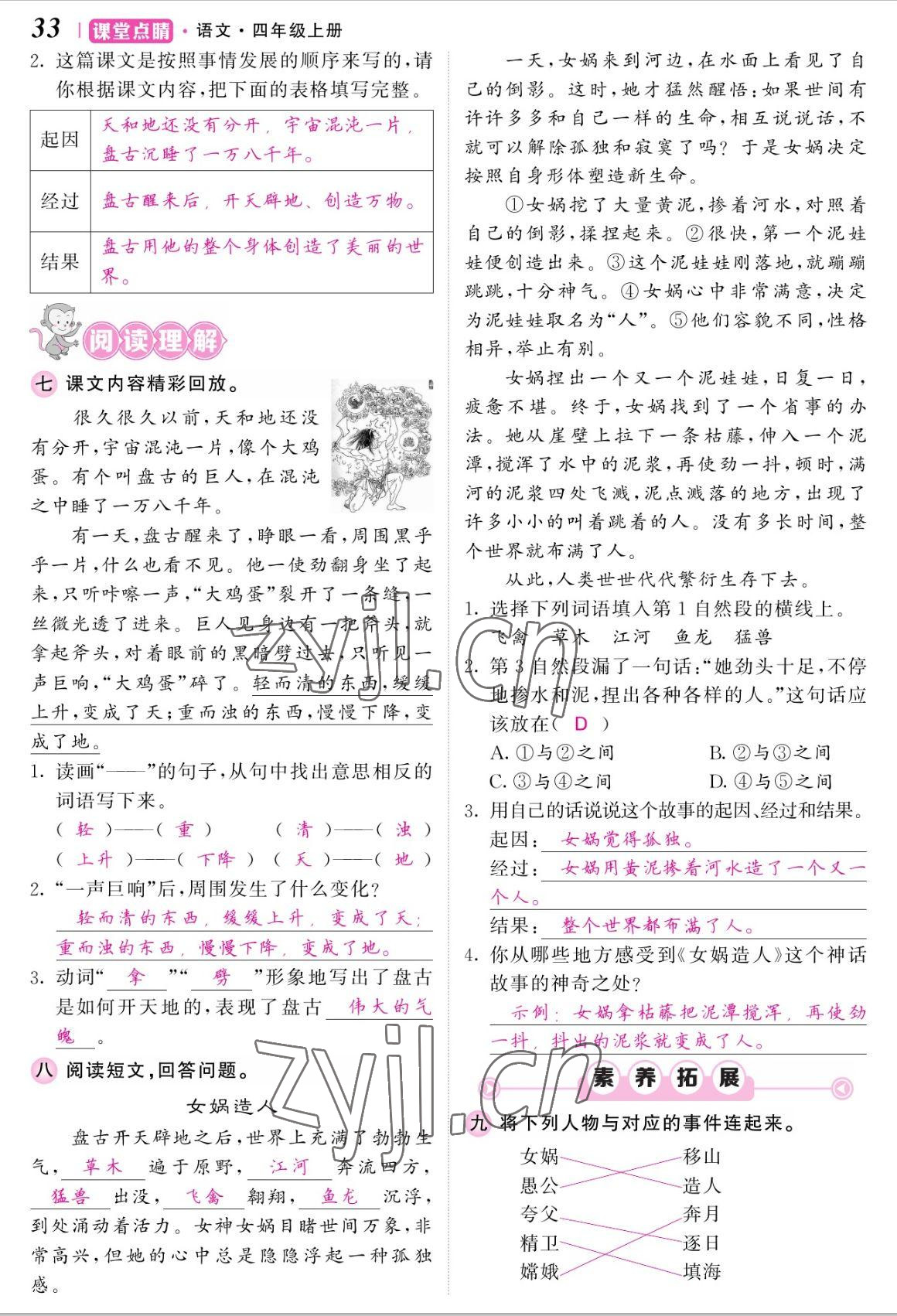 2022年课堂点睛四年级语文上册人教版湖南专版