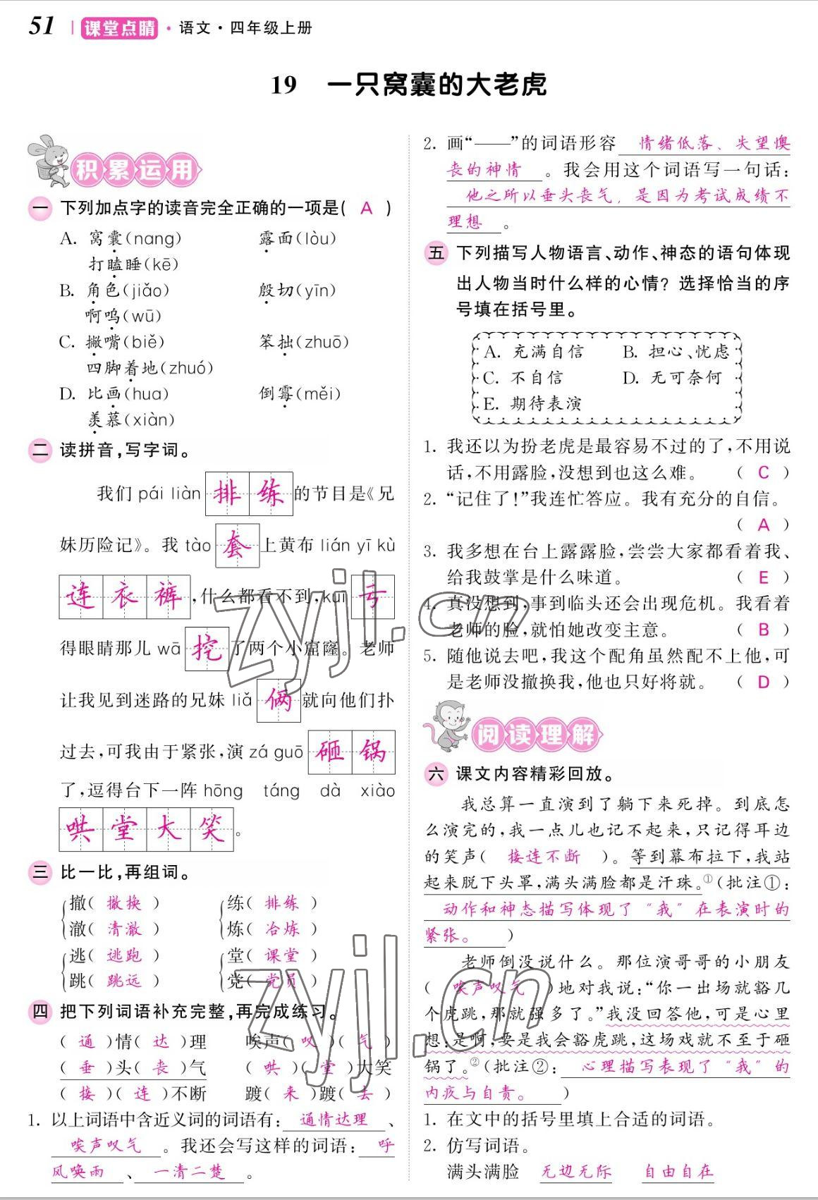 《2022年课堂点睛四年级语文上册人教版湖南专版》