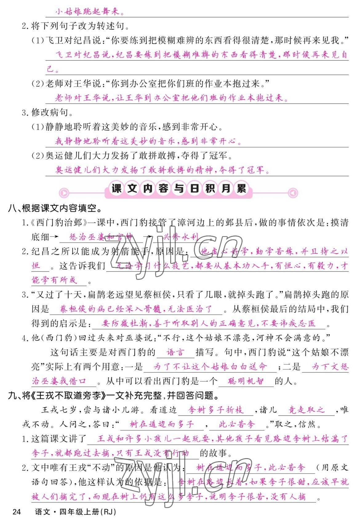 注:目前有些书本章节名称可能整理的还不是很完善,但都是按照顺序排列的,请同学们按照顺序仔细查找。练习册 2022年课堂点睛四年级语文上册人教版湖南专版 答案主要是用来给同学们做完题方便对答案用的,请勿直接抄袭。