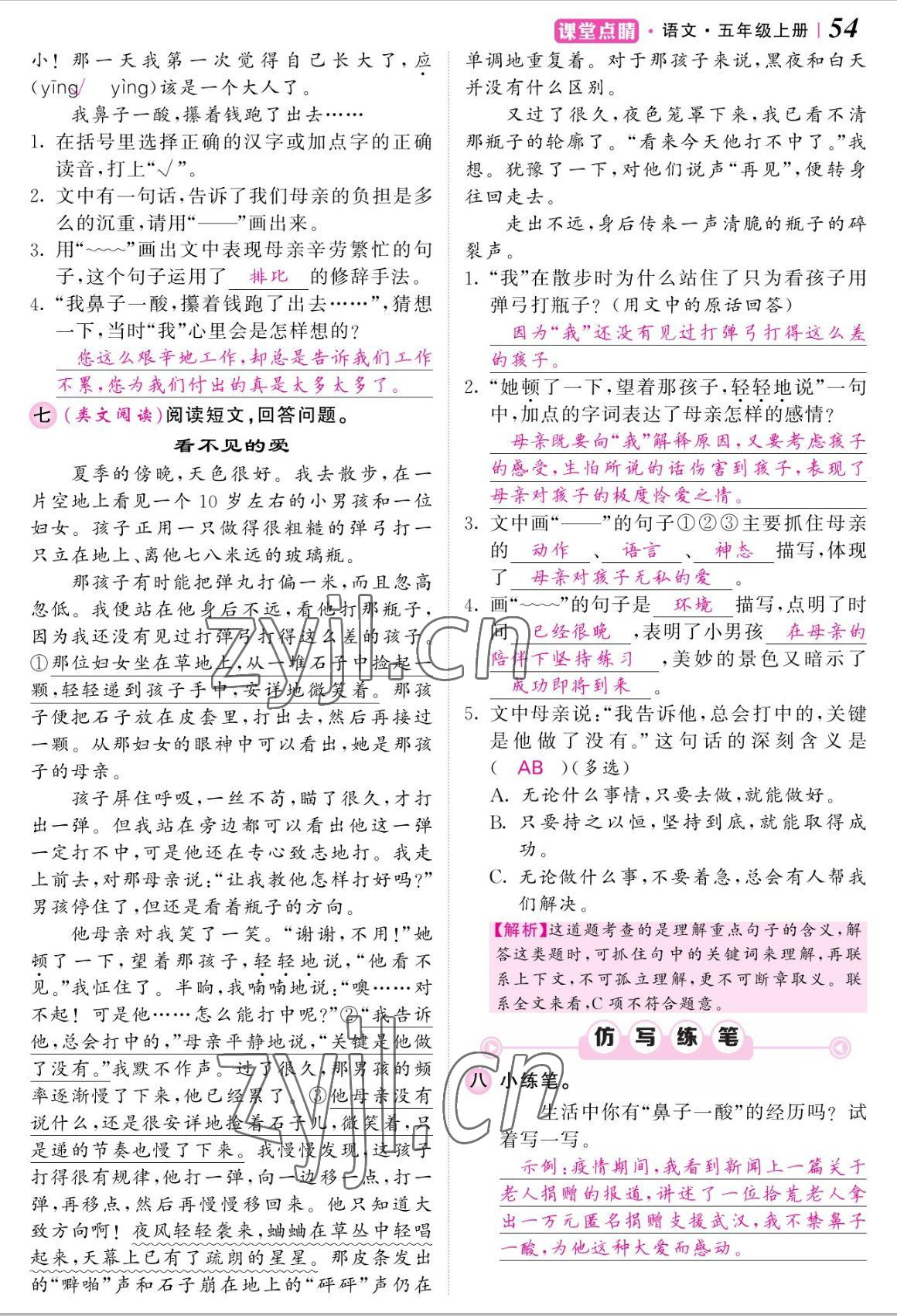 《2022年课堂点睛五年级语文上册人教版湖南专版》
