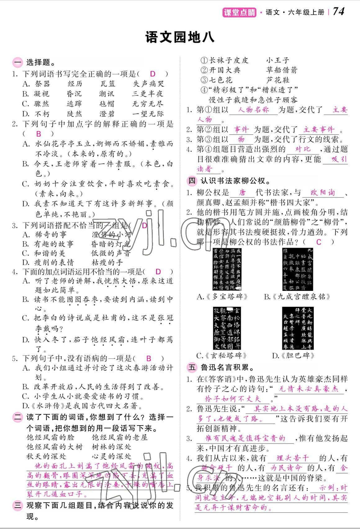 - 参考答案第74页