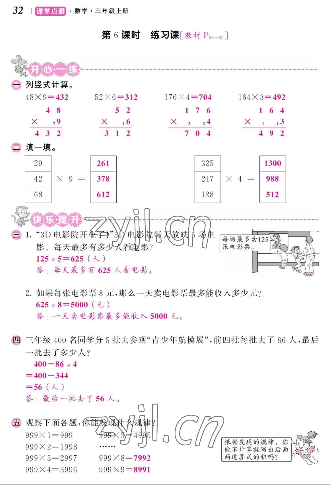 2022年课堂点睛三年级数学上册人教版湖南专版