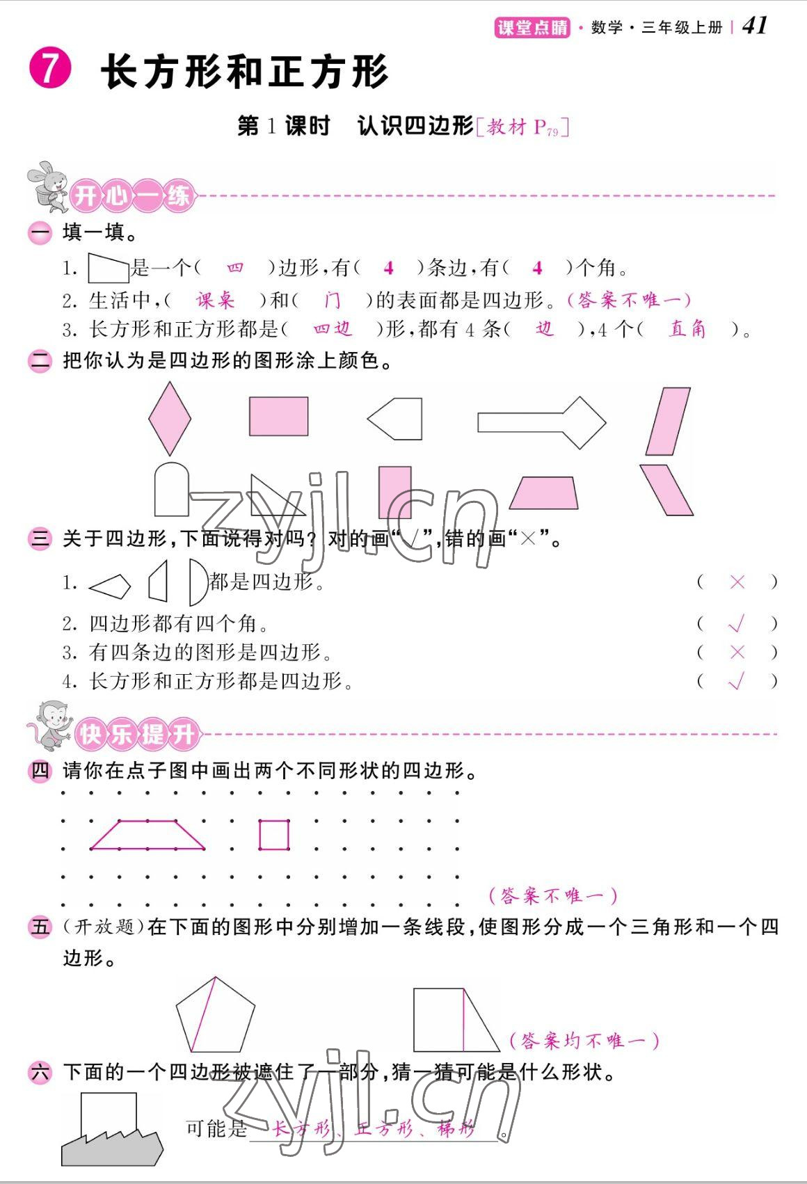 注:目前有些书本章节名称可能整理的还不是很完善,但都是按照顺序排列的,请同学们按照顺序仔细查找。练习册 2022年课堂点睛三年级数学上册人教版湖南专版 答案主要是用来给同学们做完题方便对答案用的,请勿直接抄袭。