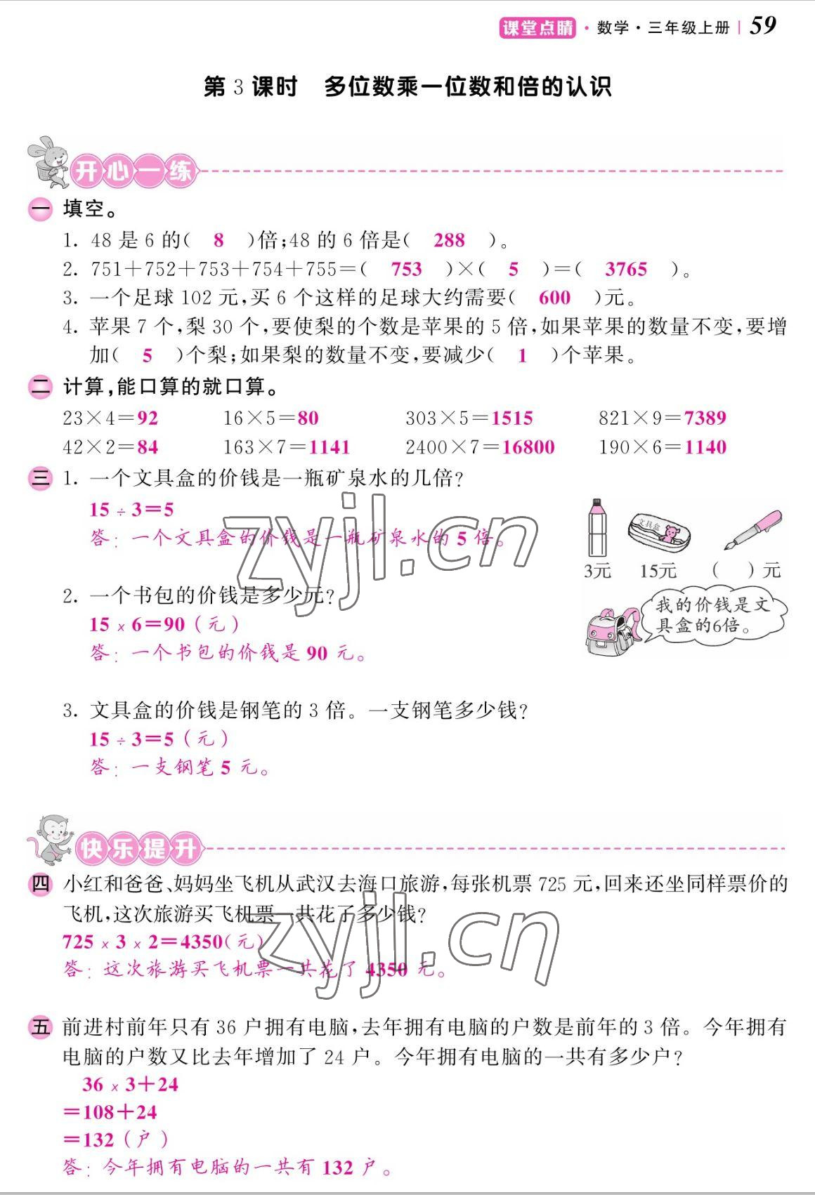 《2022年课堂点睛三年级数学上册人教版湖南专版》
