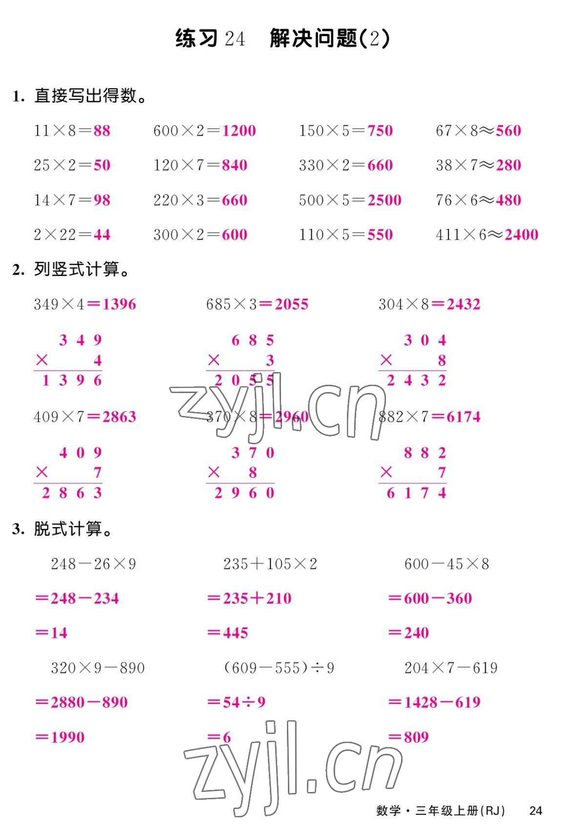 注:目前有些书本章节名称可能整理的还不是很完善,但都是按照顺序排列的,请同学们按照顺序仔细查找。练习册 2022年课堂点睛三年级数学上册人教版湖南专版 答案主要是用来给同学们做完题方便对答案用的,请勿直接抄袭。