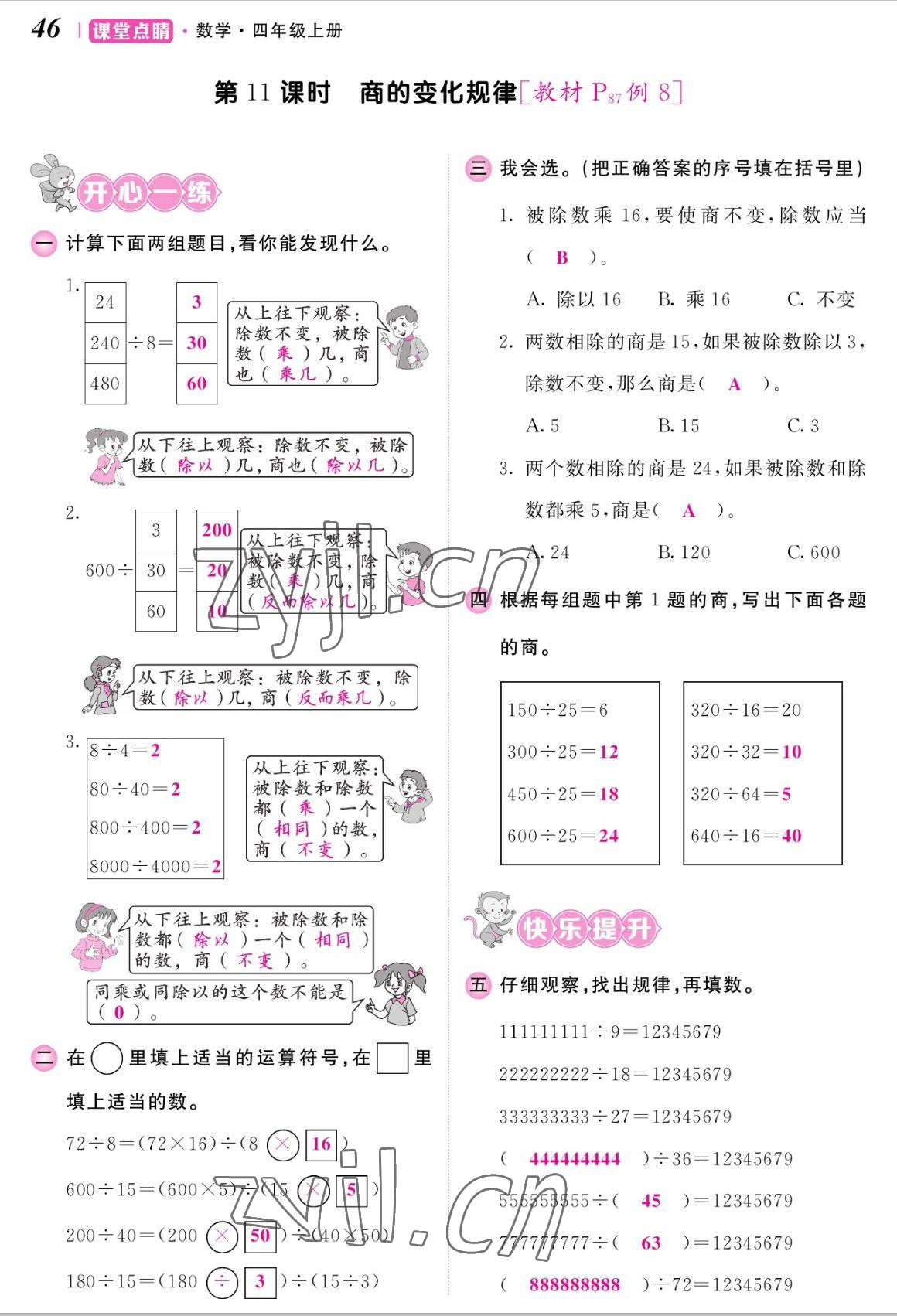 注:目前有些书本章节名称可能整理的还不是很完善,但都是按照顺序排列的,请同学们按照顺序仔细查找。练习册 2022年课堂点睛四年级数学上册人教版湖南专版 答案主要是用来给同学们做完题方便对答案用的,请勿直接抄袭。