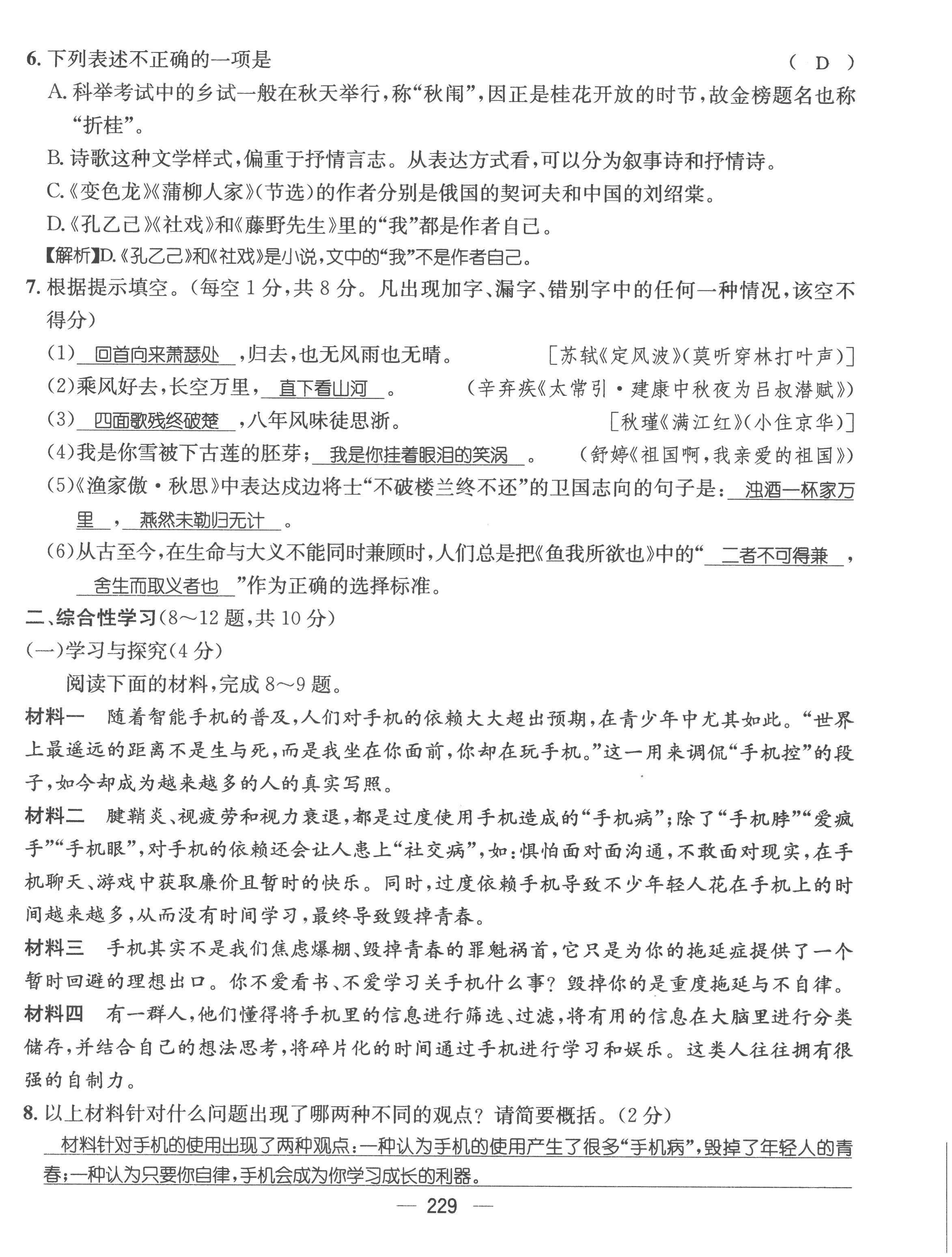 注:目前有些书本章节名称可能整理的还不是很完善,但都是按照顺序排列的,请同学们按照顺序仔细查找。练习册 2022年名师测控九年级语文上册人教版云南专版 答案主要是用来给同学们做完题方便对答案用的,请勿直接抄袭。