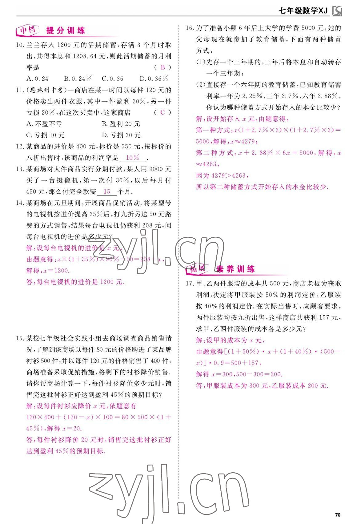- 参考答案第70页