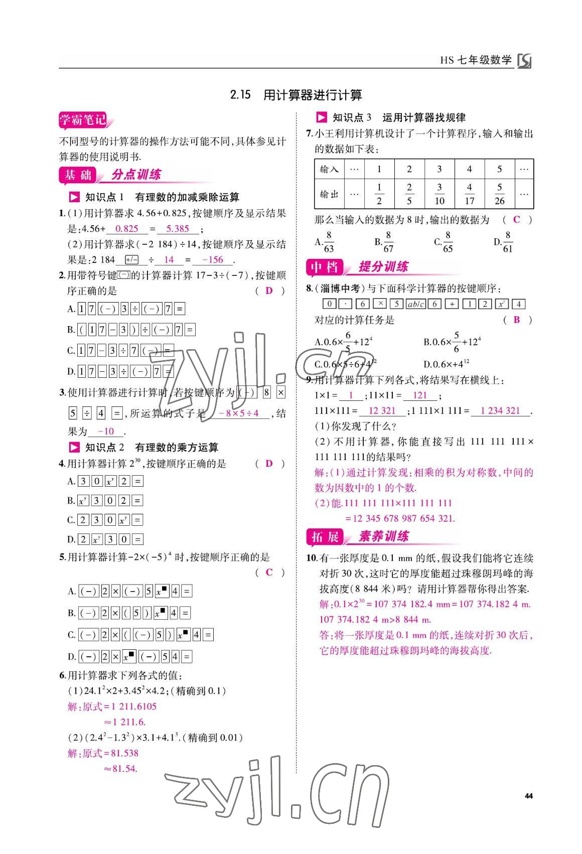 参考答案第44页