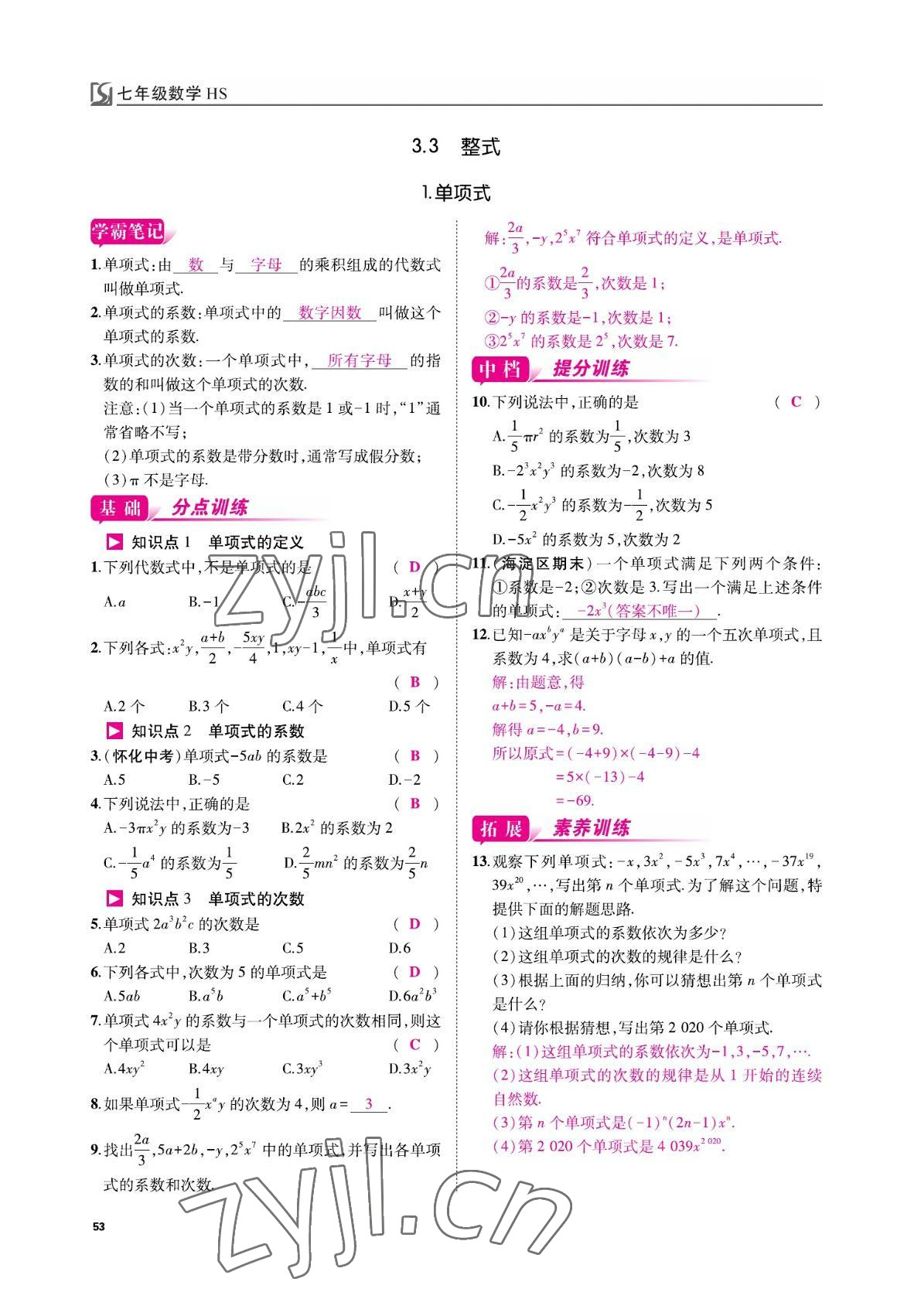 - 参考答案第53页