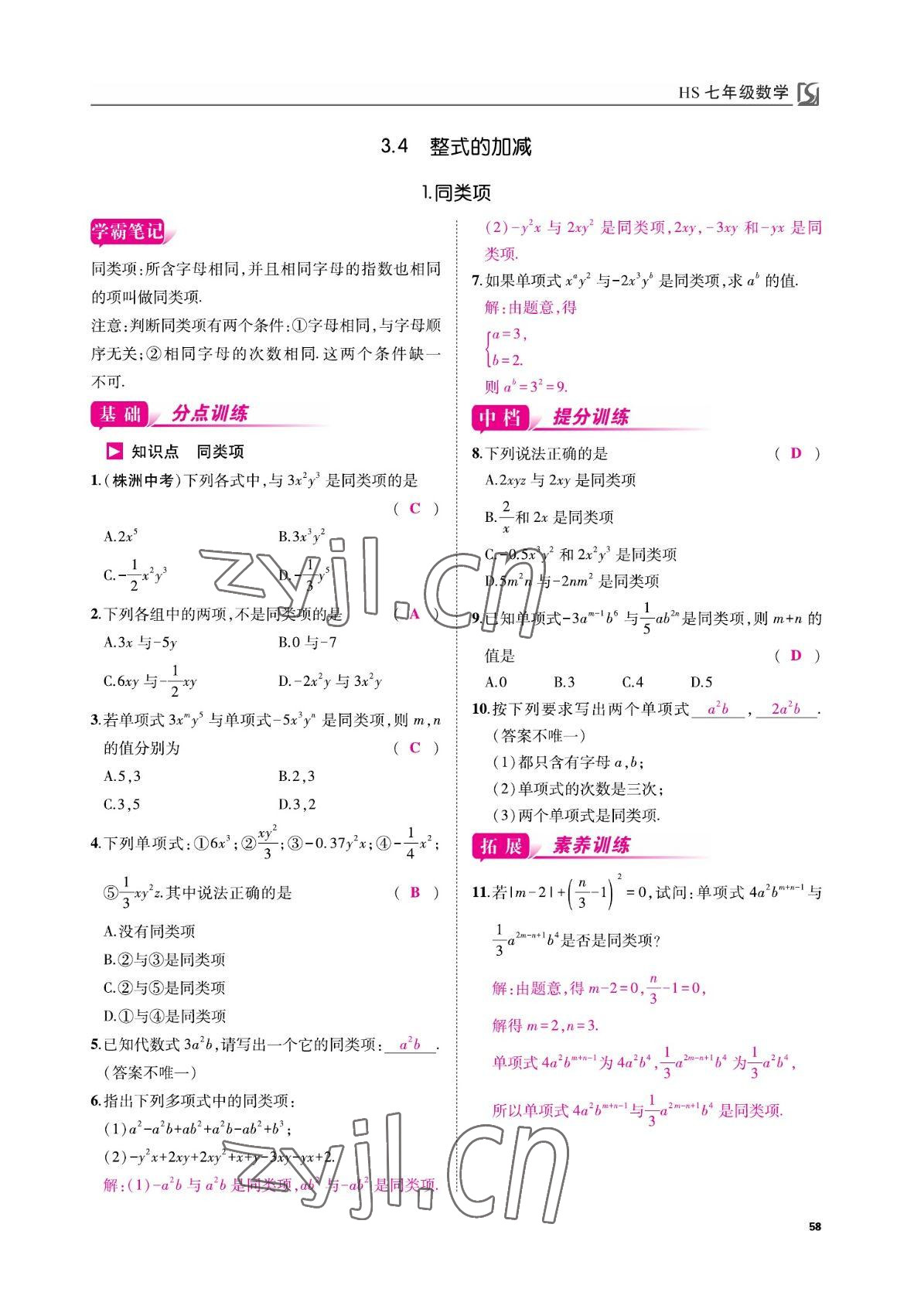 - 参考答案第58页