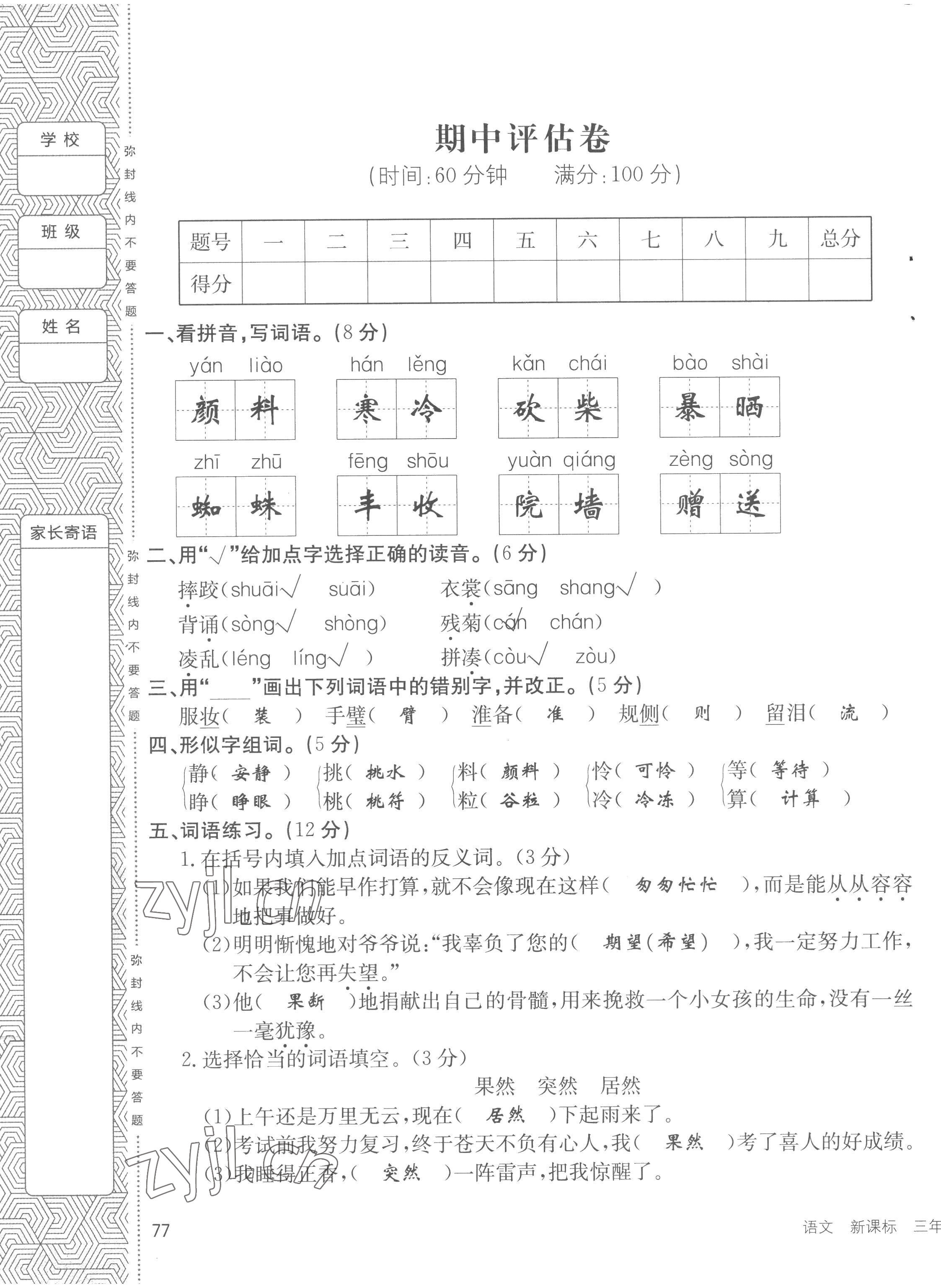 注:目前有些书本章节名称可能整理的还不是很完善,但都是按照顺序排列的,请同学们按照顺序仔细查找。练习册 2022年英才小状元三年级语文上册人教版 答案主要是用来给同学们做完题方便对答案用的,请勿直接抄袭。