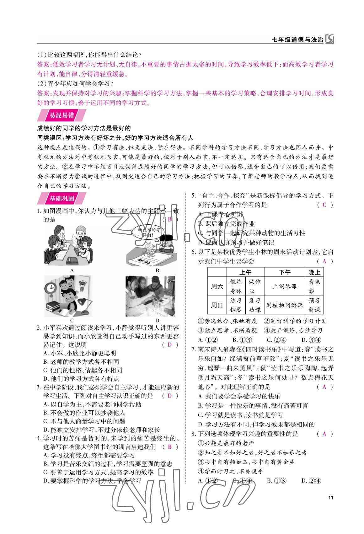 注:目前有些书本章节名称可能整理的还不是很完善,但都是按照顺序排列的,请同学们按照顺序仔细查找。练习册 2022年我的作业七年级道德与法治上册人教版 答案主要是用来给同学们做完题方便对答案用的,请勿直接抄袭。