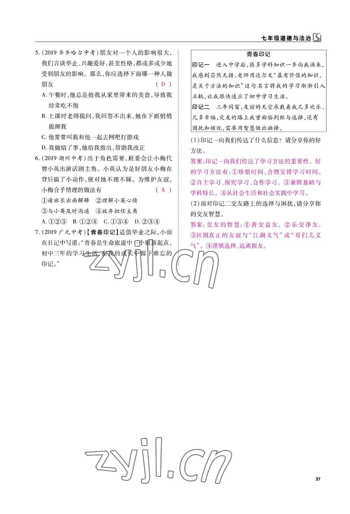 注:目前有些书本章节名称可能整理的还不是很完善,但都是按照顺序排列的,请同学们按照顺序仔细查找。练习册 2022年我的作业七年级道德与法治上册人教版 答案主要是用来给同学们做完题方便对答案用的,请勿直接抄袭。
