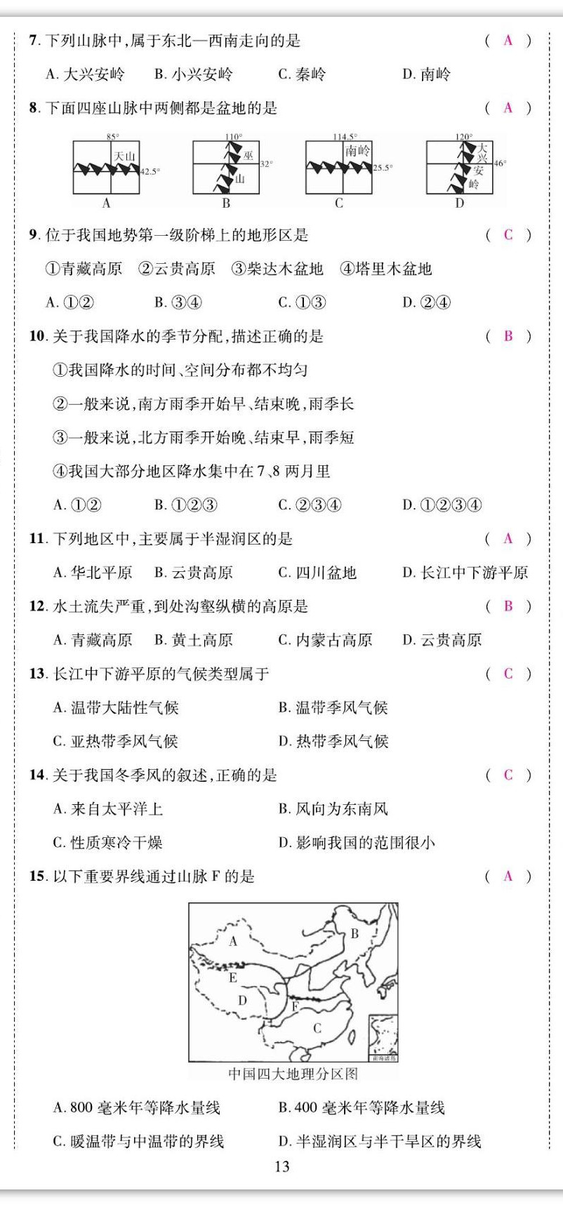 注:目前有些书本章节名称可能整理的还不是很完善,但都是按照顺序排列的,请同学们按照顺序仔细查找。练习册 2022年我的作业七年级地理上册中图版 答案主要是用来给同学们做完题方便对答案用的,请勿直接抄袭。