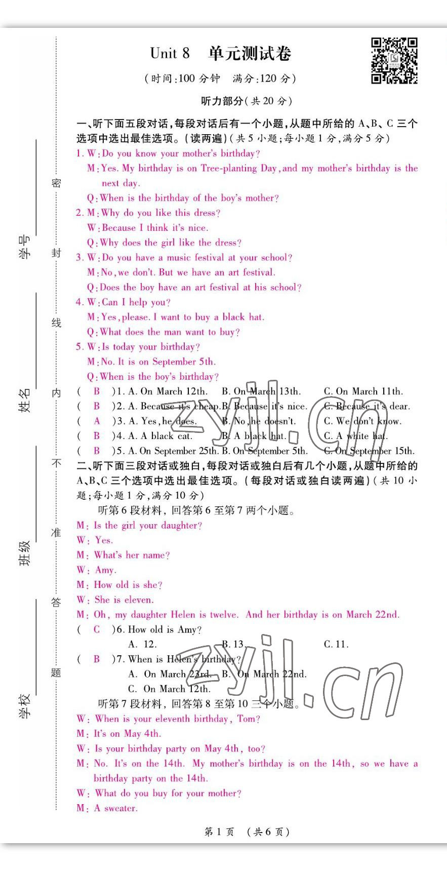 - 参考答案第6页