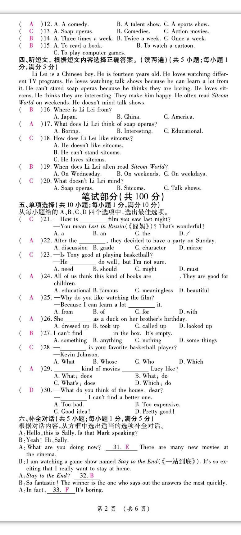 - 参考答案第6页