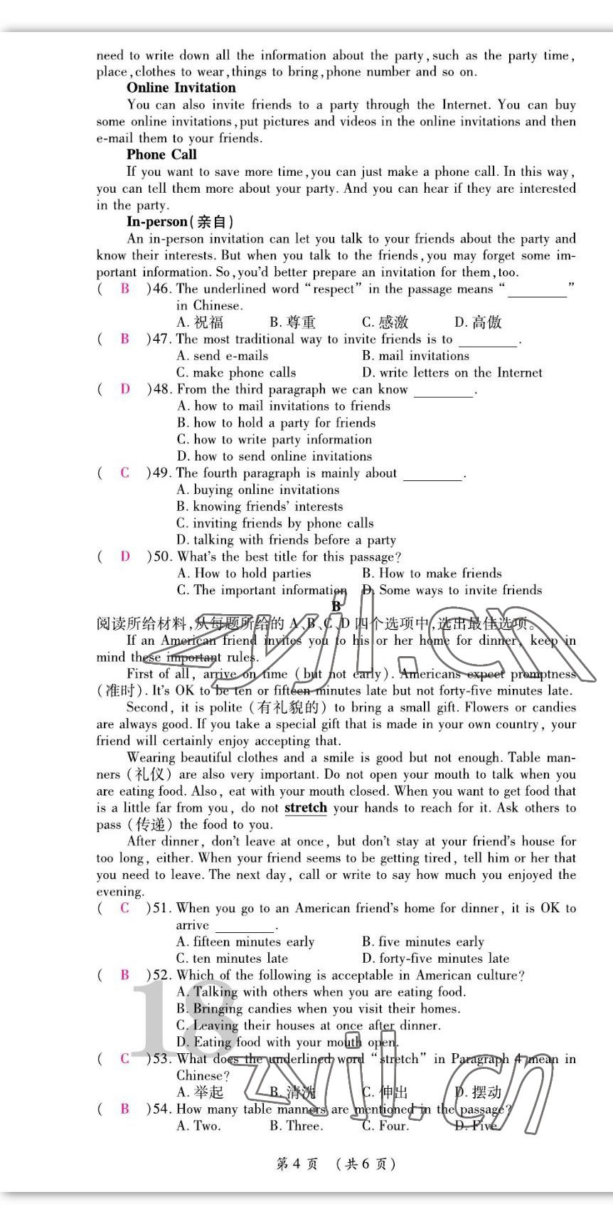 - 参考答案第54页