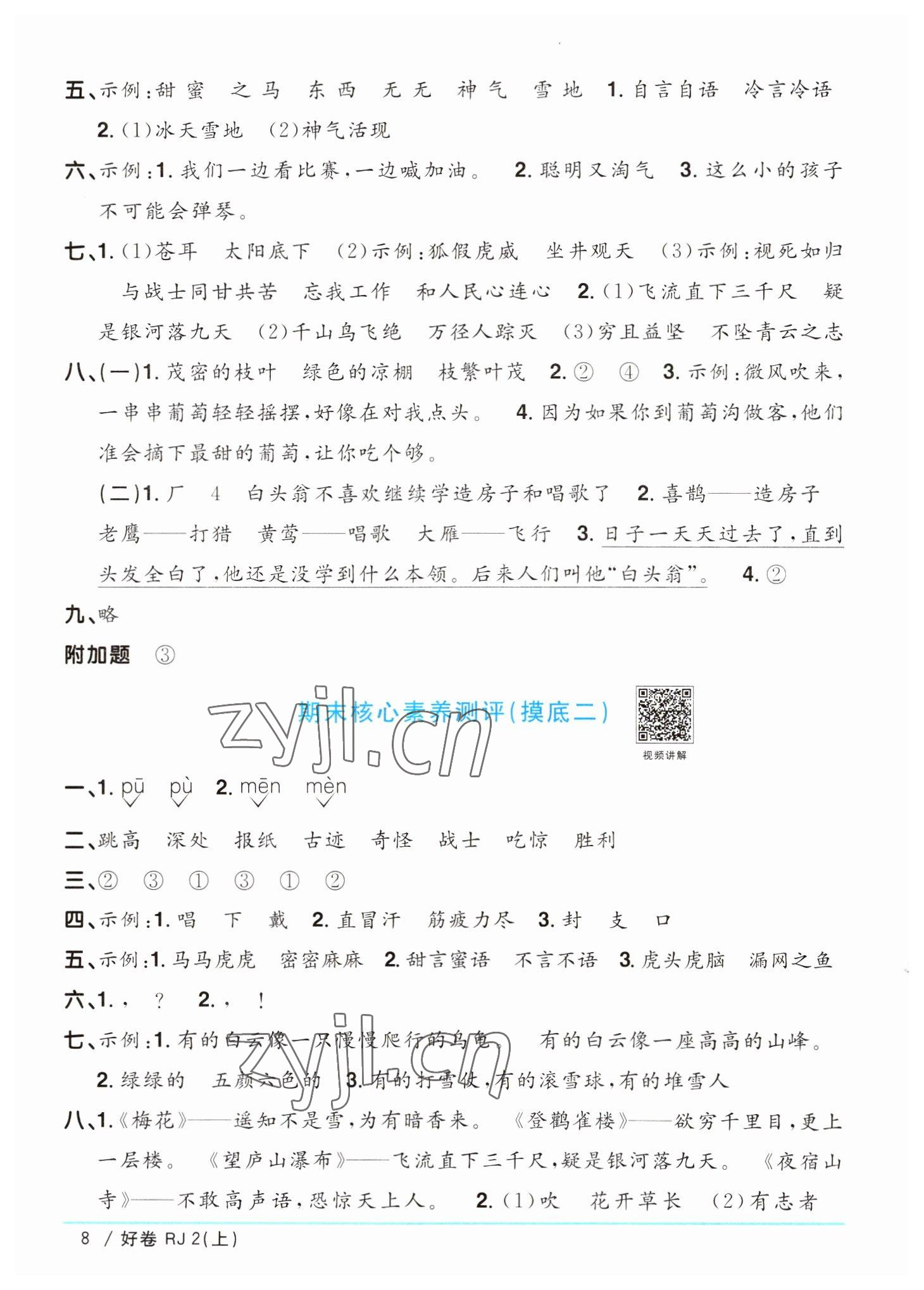 注:目前有些书本章节名称可能整理的还不是很完善,但都是按照顺序排列的,请同学们按照顺序仔细查找。练习册 2022年阳光同学一线名师全优好卷二年级语文上册人教版 答案主要是用来给同学们做完题方便对答案用的,请勿直接抄袭。