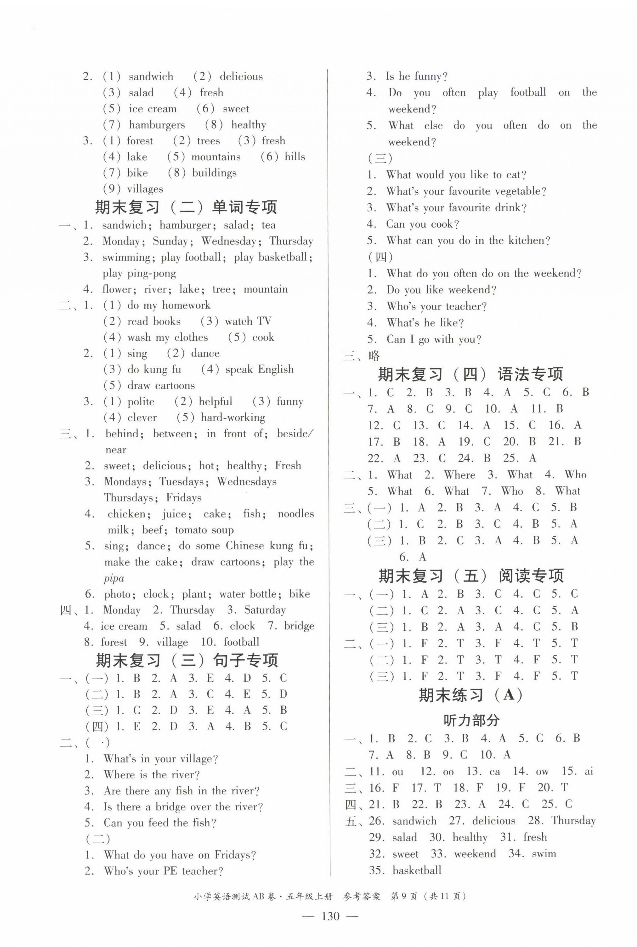 《2022年小学英语测试AB卷五年级英语上册人教版佛山专版》