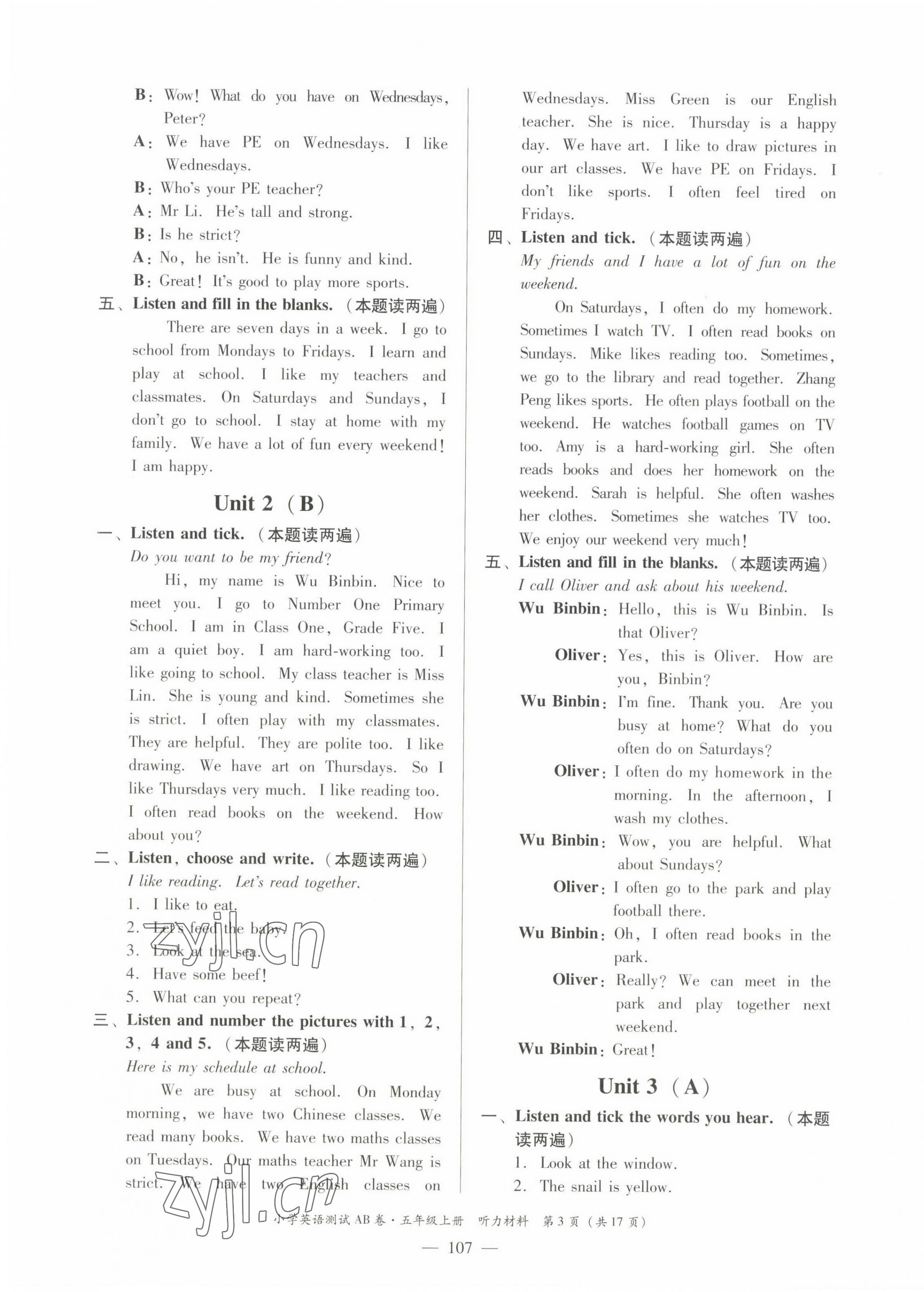2022年小学英语测试AB卷五年级英语上册人教版佛山专版