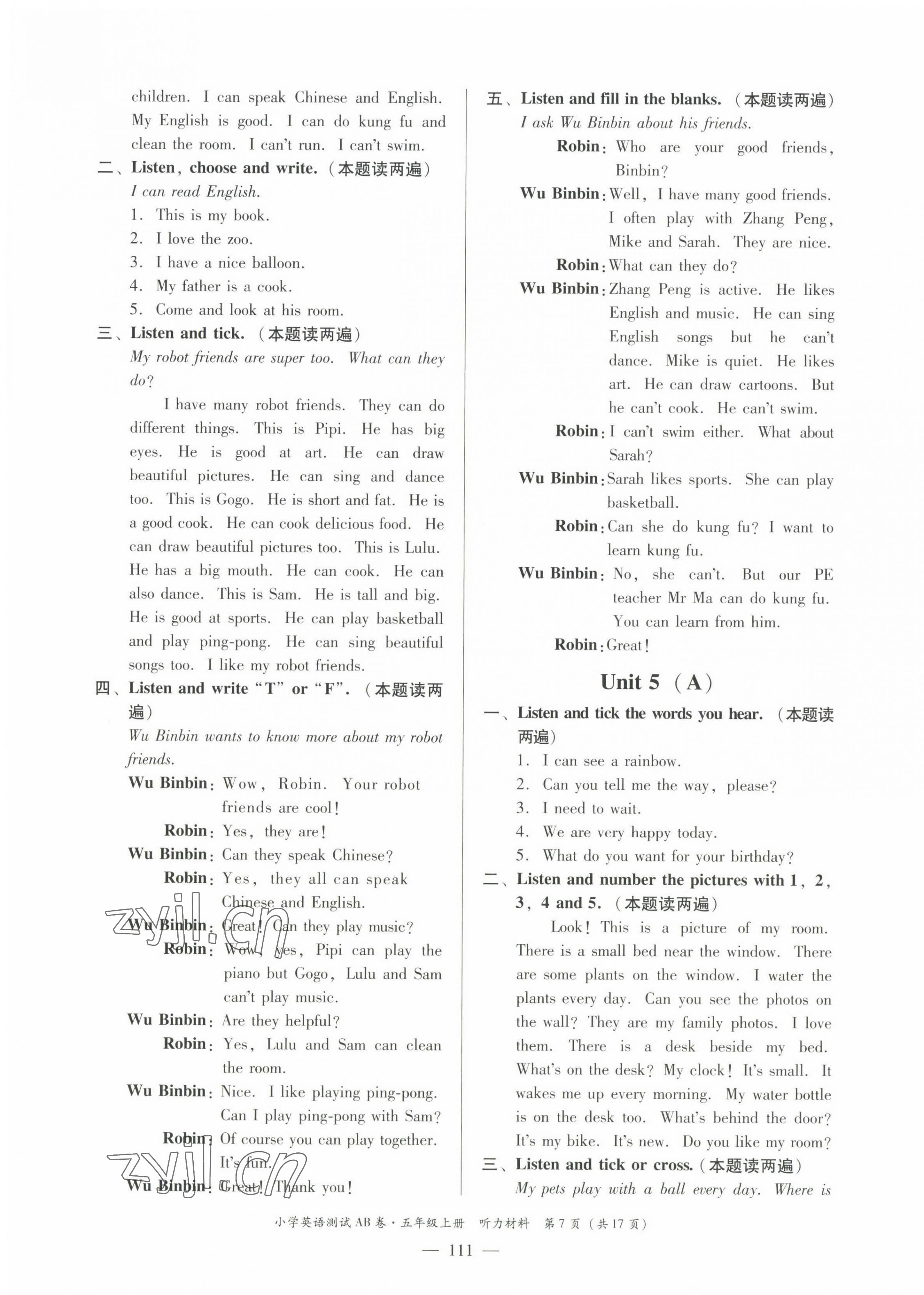 2022年小学英语测试AB卷五年级英语上册人教版佛山专版