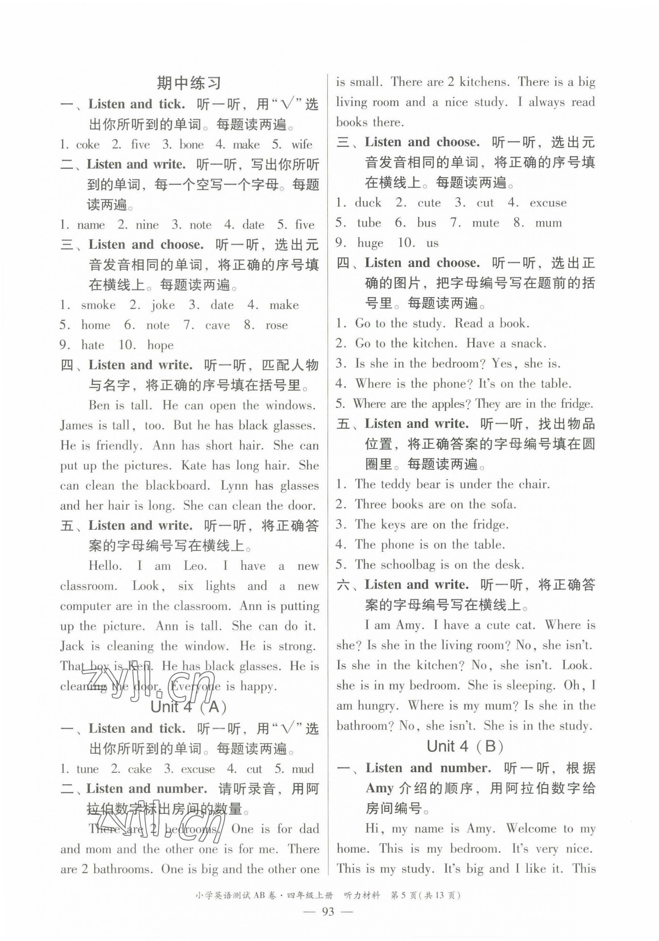 2022年小学英语测试AB卷四年级上册人教版佛山专版