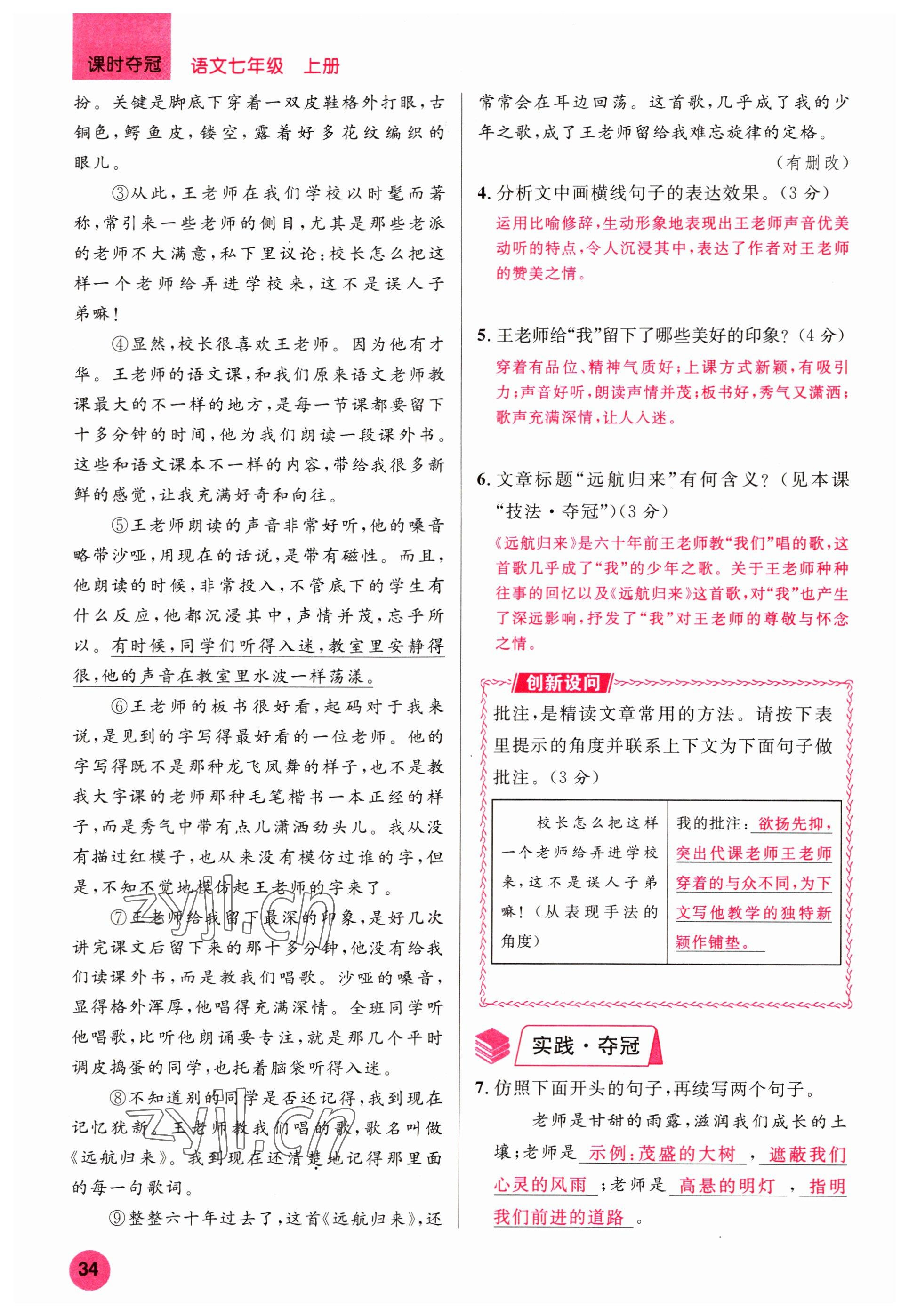 2022年课时夺冠七年级语文上册人教版黄冈孝感咸宁专版