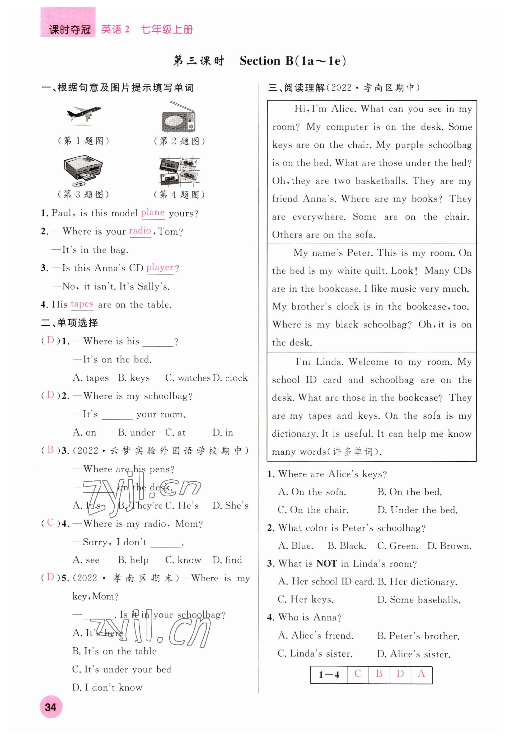 注:目前有些书本章节名称可能整理的还不是很完善,但都是按照顺序排列的,请同学们按照顺序仔细查找。练习册 2022年课时夺冠七年级英语上册人教版黄冈孝感咸宁专版 答案主要是用来给同学们做完题方便对答案用的,请勿直接抄袭。
