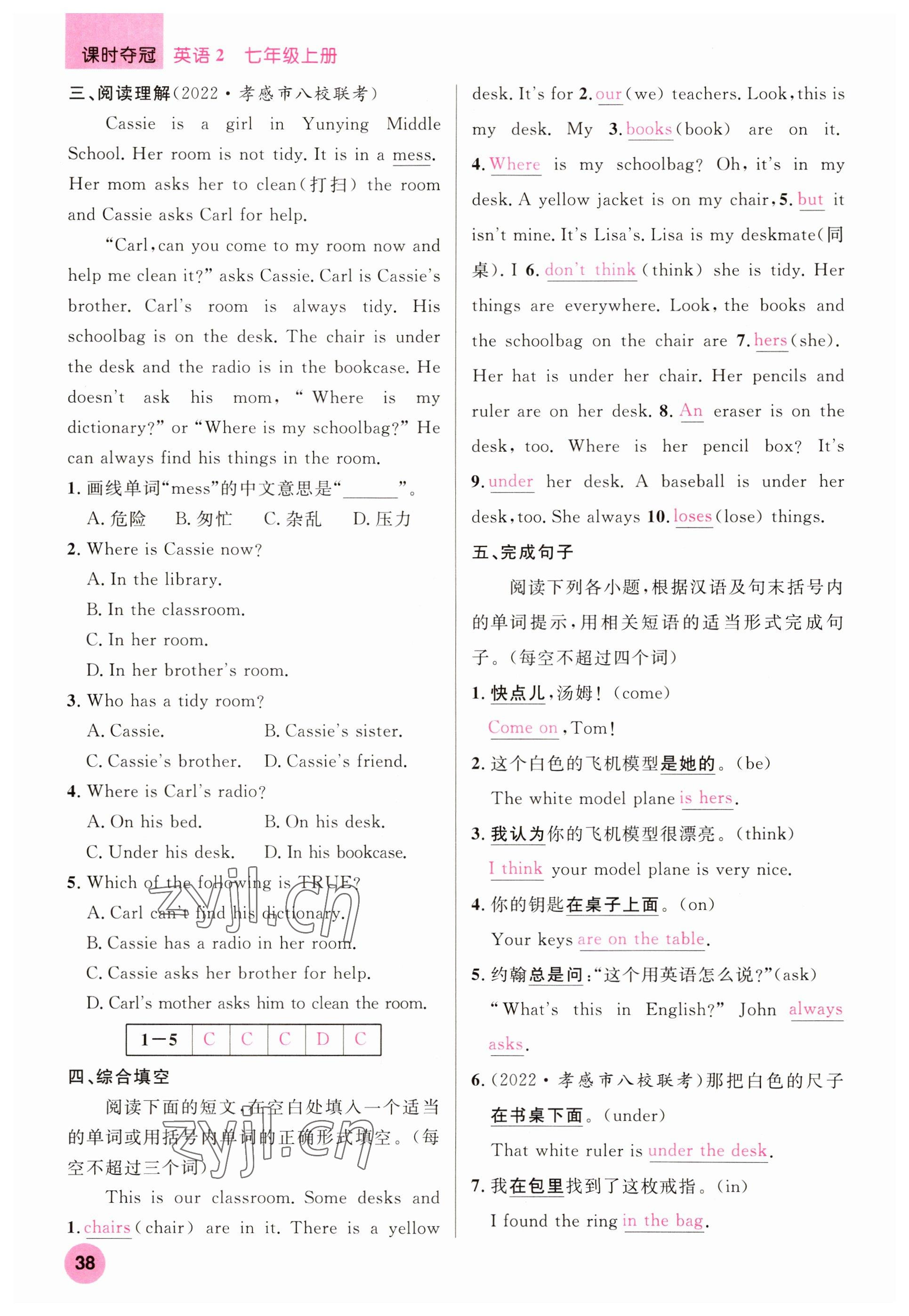 2022年课时夺冠七年级英语上册人教版黄冈孝感咸宁专版